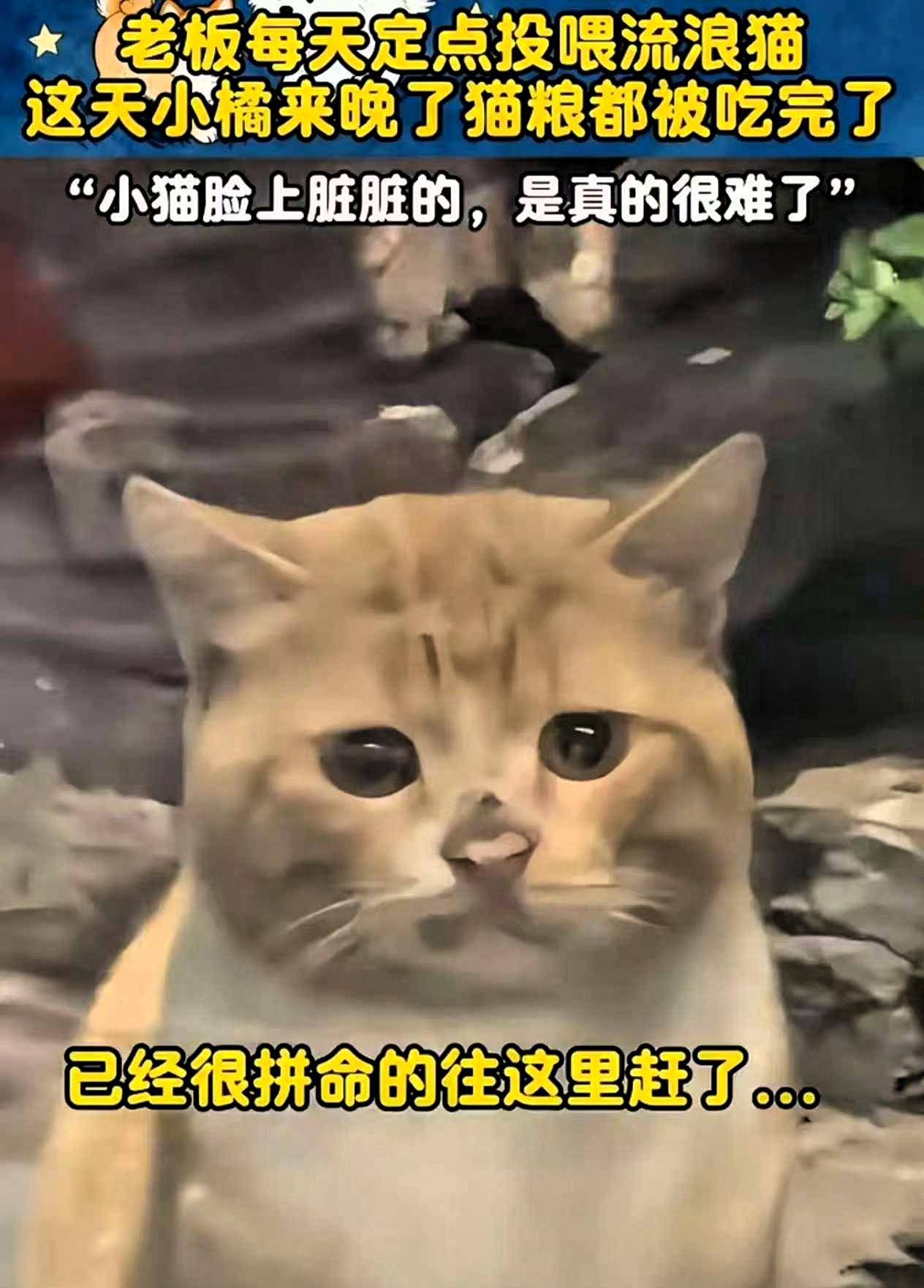 这天,男子像往常一样来到投喂点,可等了将近一个小时,都没见到猫咪的身影。他心里渐渐泛起担忧,害怕猫咪在外遭遇意外,毕竟流浪在外,随时都可能遇到危险。就在他满心牵挂的时候,猫咪终于出现在了眼前。