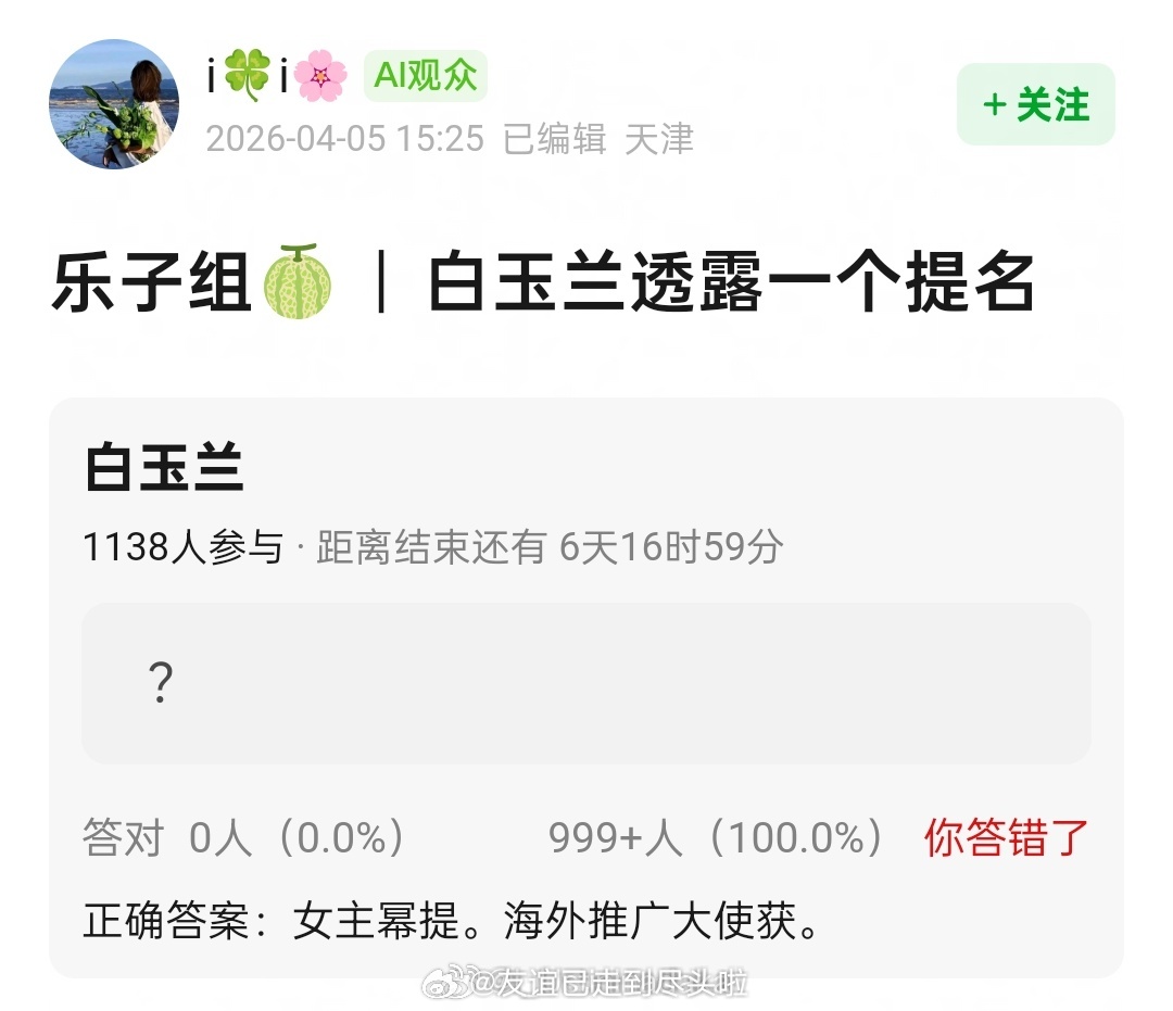 🍉:杨幂白玉兰女主提名+海外推广大使