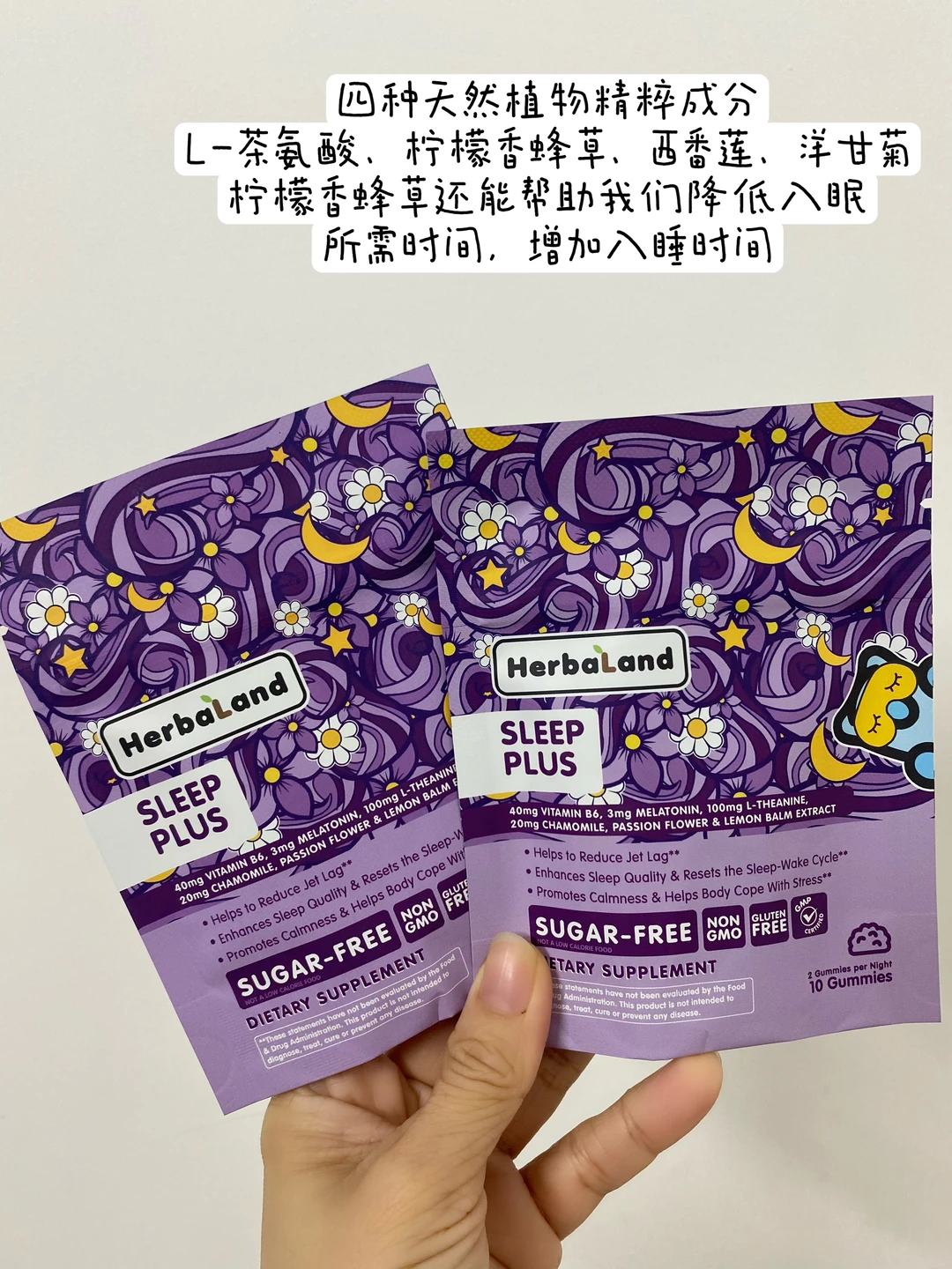 除此之外就只有4种植物萃取的成分了,像植物成分里的柠檬香蜂草能助我们降低入眠所需时间,增加入睡时间。