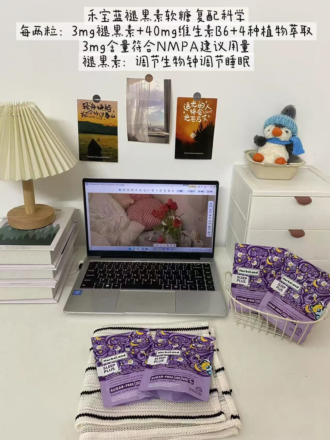 人到中年,拥有一个好的睡眠真的太重要了。可以在睡前冥想、拉伸一下,泡下脚,都是对睡眠有帮助的。但是随着年龄的增长,体内的褪黑素也会有所下降,这是没有办法避免的,不过没有关系,最近自己也做了一些相关功课,刚好身边朋友也有在吃褪黑素的,就给我介绍了禾宝蓝褪黑素,褪黑素可以帮助调节生物钟调节睡眠,禾宝蓝的褪黑素软糖每2粒含有3.0mg褪黑素,符合国家药监局推荐用量1 - 3mg/天✅,还复配了40mg维生素B6,更加科学。