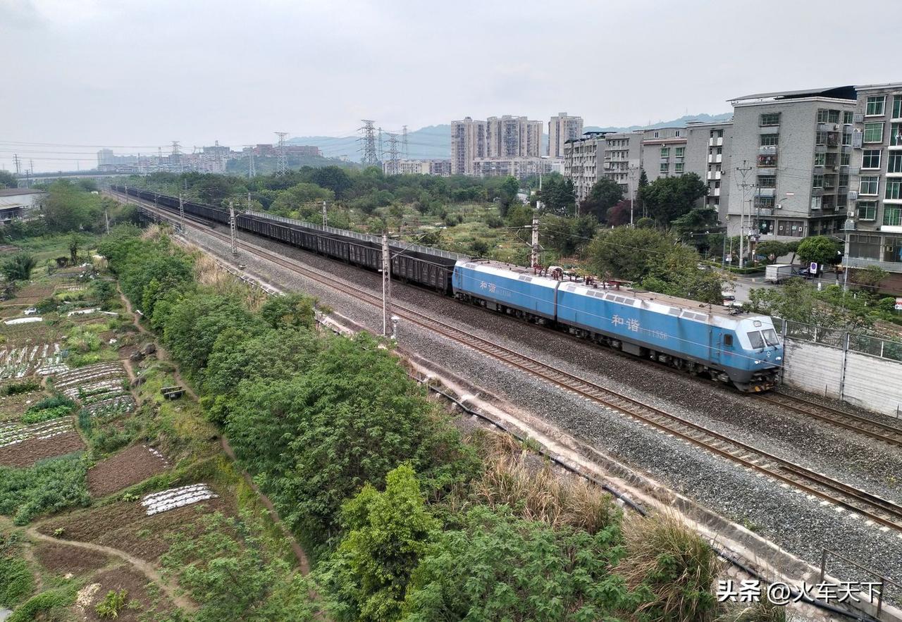 同一个地方相隔十年拍摄的图片,这是西永大桥跨兴珞铁路的地方,兴珞铁路是指兴隆场编组站经团结村站、白市驿站、陶家场线路所到珞璜站的铁路,是重庆枢纽成渝、川黔方向货车外绕线。两张图里面建筑并无太明显变化,只是绿色植物比十年前多了一些。图中这片地方也是进入本世纪初随着城市化逐渐发展起来的。火车