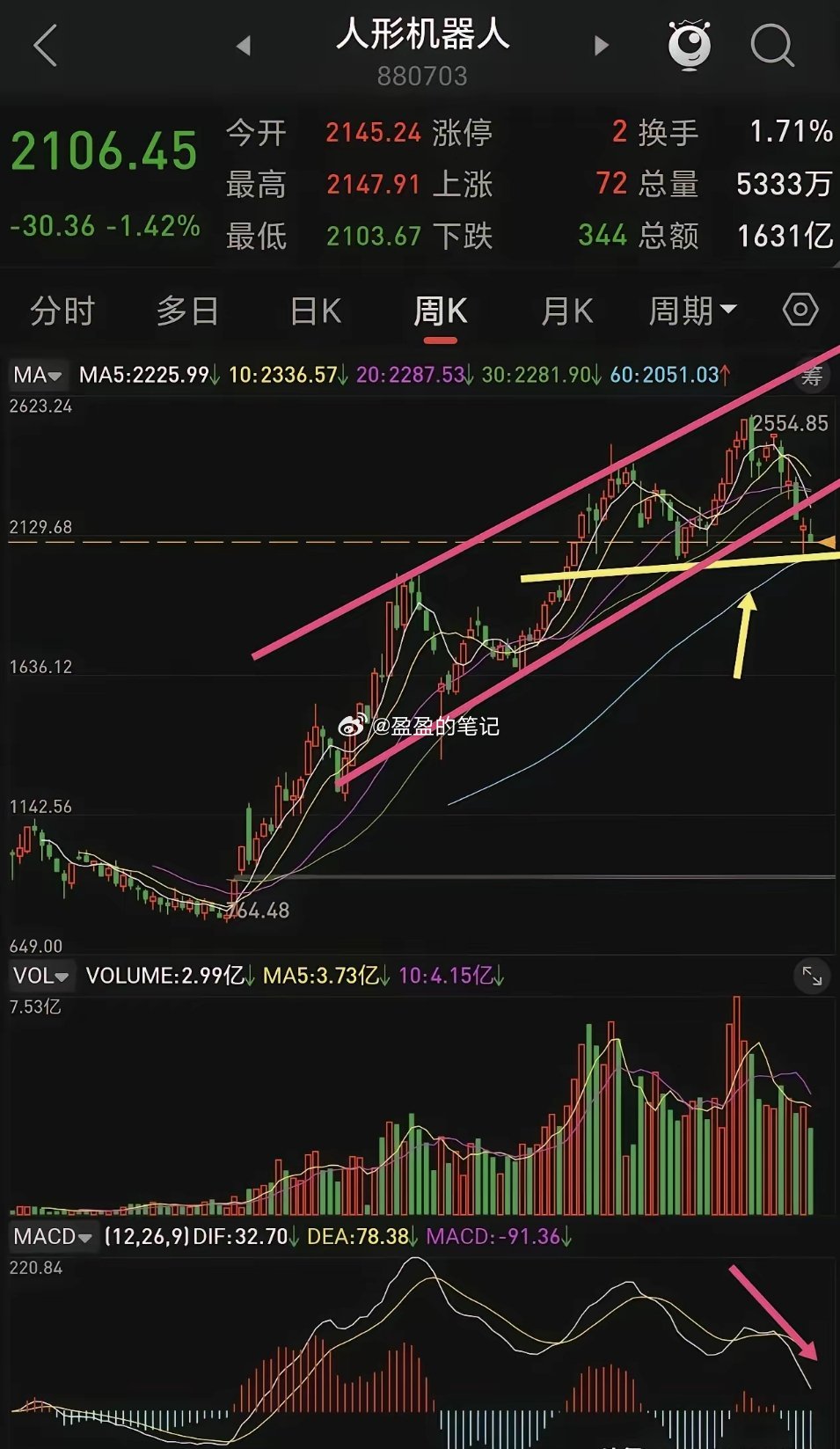 人形机器人基金我已经空仓几个月了,何时才能进场?人形机器人从日线周线月线趋势看,从24年启动,涨幅巨大,目前位置仍然是高高在上,相关联的股票涨幅过大,业绩很难支撑这个位置。因为目前人形机器人还是处在初级阶段,距离量产还有很长一段时间。 这个板块前期是炒概念,现在概念已经炒的差不多了,审美疲劳,开始进入抗过敏磨合状态。在大规模量化生产以前,主力要洗盘消磨人的意志与耐性。手法就是震荡阴跌,涨涨退退。 从它的日线及周线走势图来看,M头明显,日线周线都处在下跌趋势中,日线走势与周线走势,都已经跌破了原来的上升通道下沿支撑,假如这个位置不能止跌企稳,尽快收复支撑位,进入原来的上升通道内,那么它就要继续震荡下行,寻找新的支撑位,采取涨少跌多阶梯式回调。 重仓的做好反弹减仓准备,空仓的还要耐心等待。板块指数能再下跌10%以上,也许就机会来了,等待时间按月计算,也许是下半年。 个人观点仅供参考,不构成投资依据。