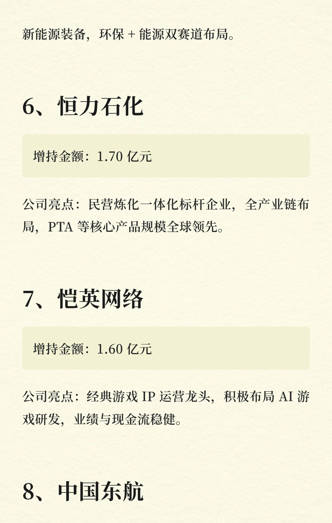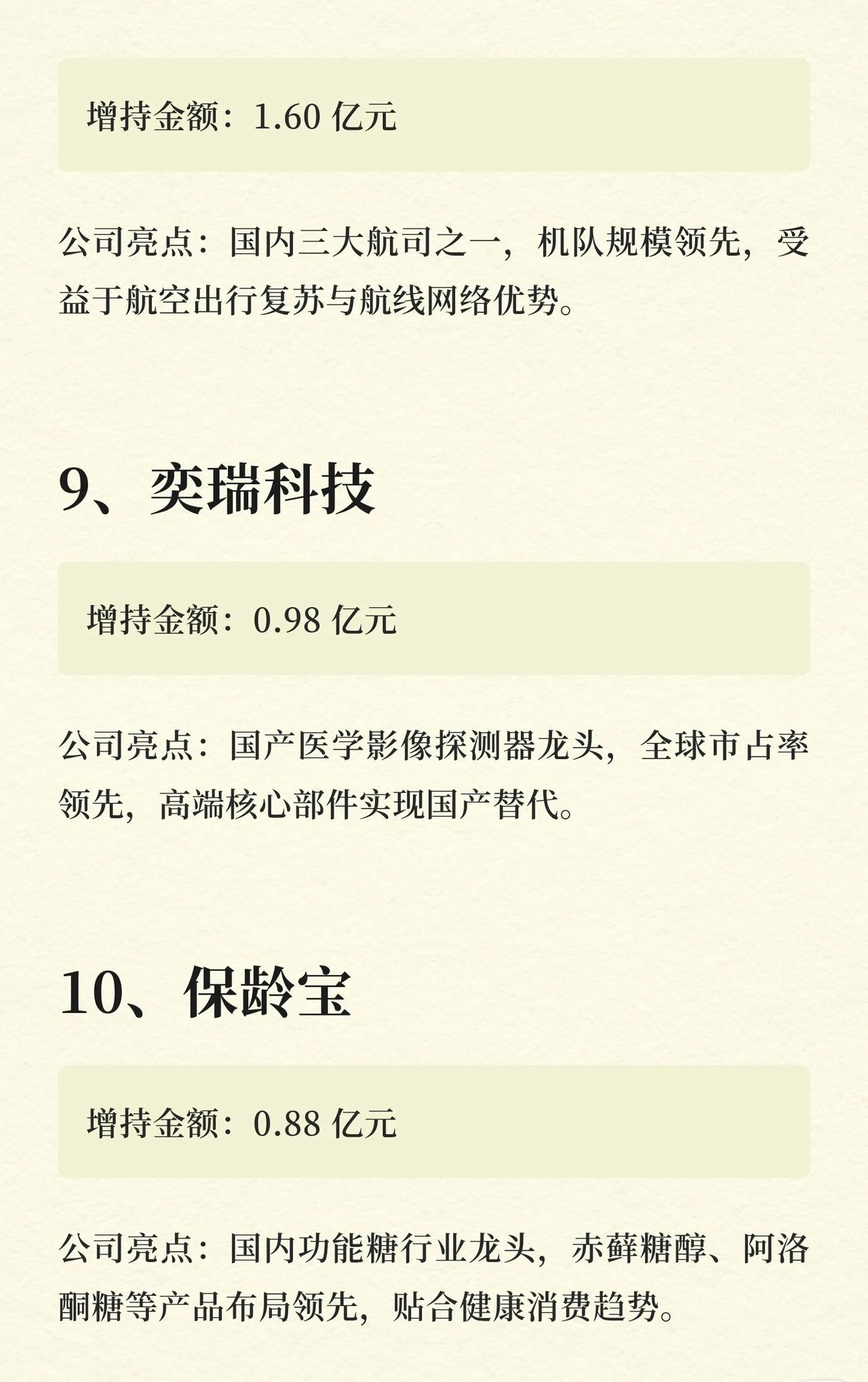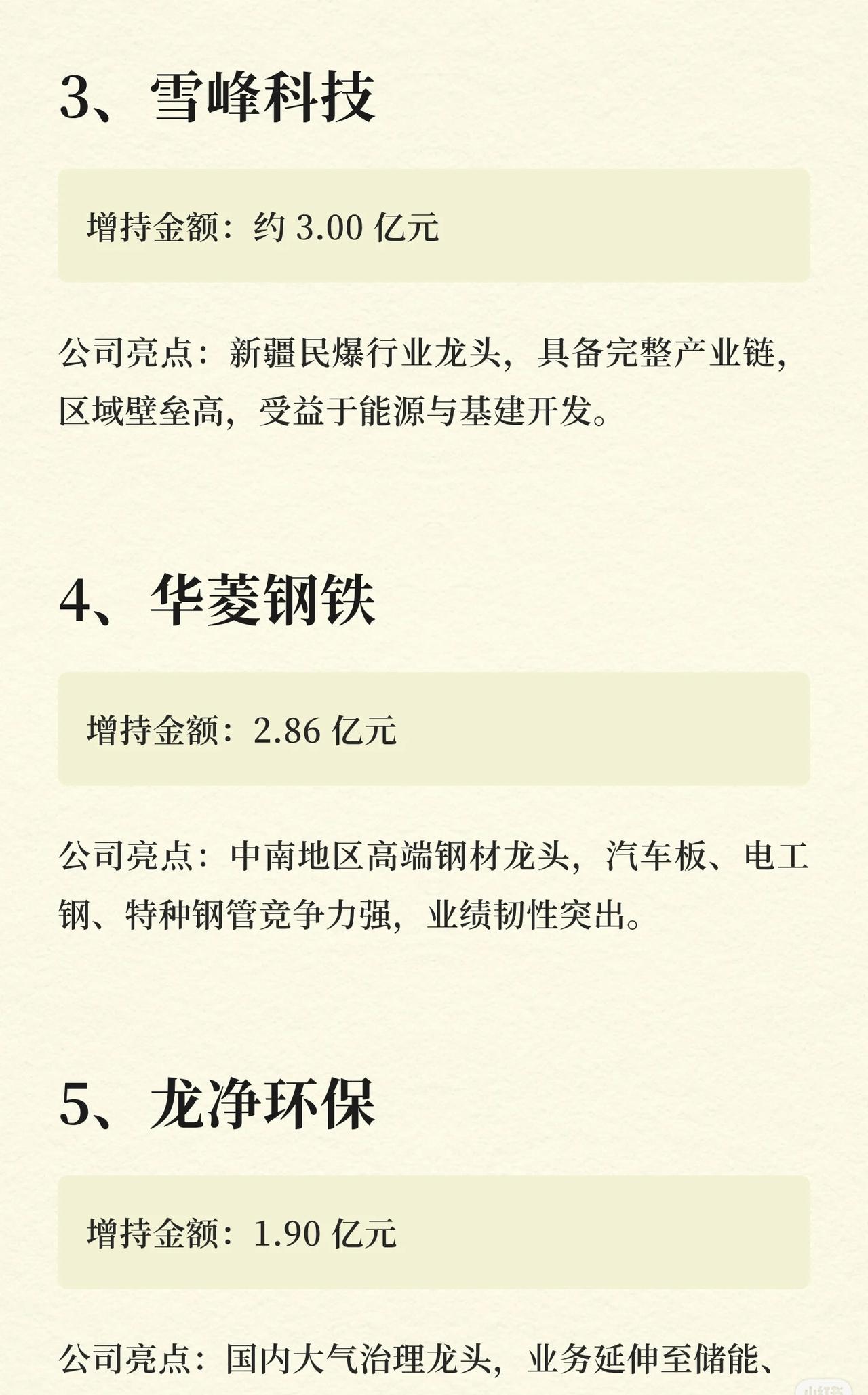(注:以上企业按“增持金额从高到低”排序,数据及亮点基于公开信息梳理,仅供参考。)