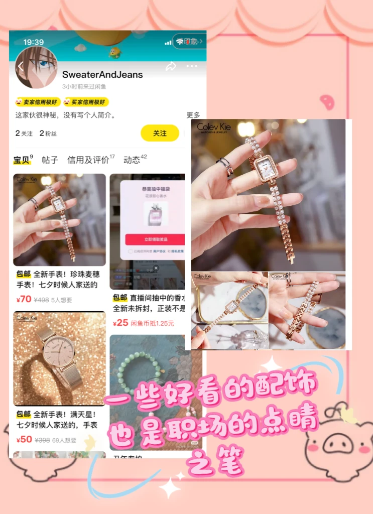 配饰可是点睛之笔哦。手表的话,简约的石英表或者小巧的智能表,能让你在查看时间时不经意间透露出品味。在闲鱼上可以淘到一些小众品牌或者成色不错的大众品牌手表,性价比超高。