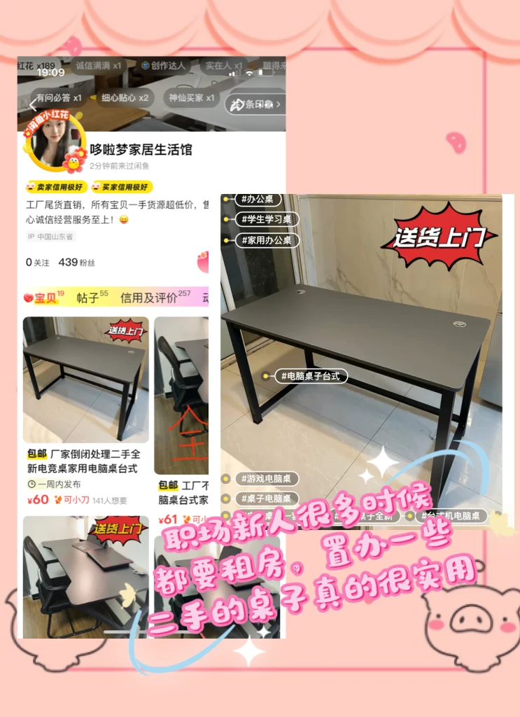 租房当然也要布置得温馨舒适。在闲鱼上可以找到性价比超高的二手家具,像打工人常用的书桌、方便在家加班或者自我提升。价格比买新的便宜太多啦,关键还环保。