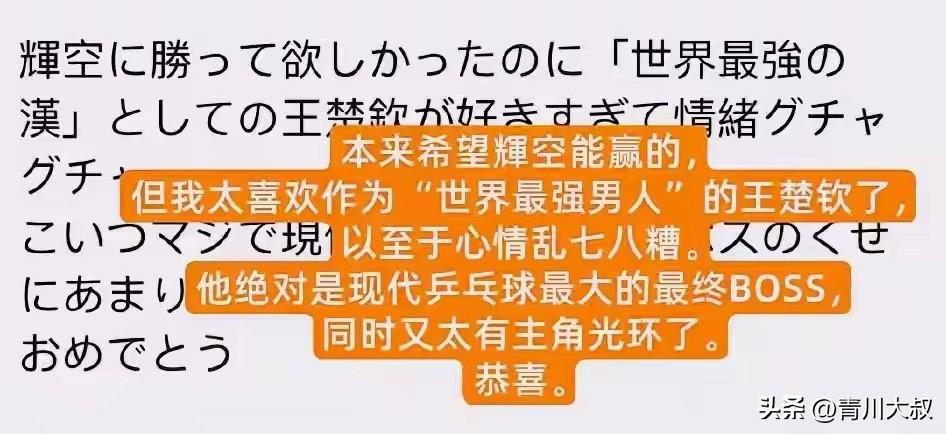 日本网友称王楚钦为世界最强男人!哈哈,