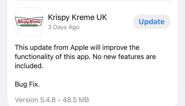 过去一周,部分 app 的更新说明显示更新来自 Apple 而非开发者。“此次的 Apple 更新将会改善该 app 的功能。未包括任何新功能。”更新说明中显示。
