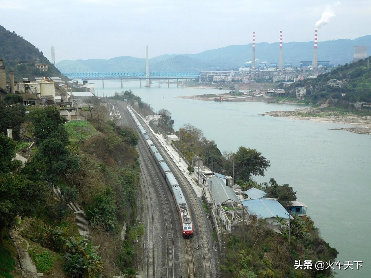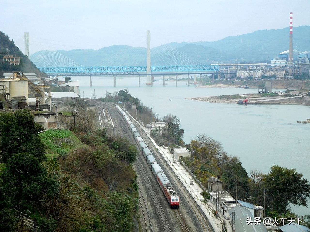 2019年春运期间,乌鲁木齐铁路局担当的乌鲁木齐到西安K679/680次列车临时改为乌鲁木齐到重庆,走兰新、兰渝方向,这是重庆开往乌鲁木齐的K679次列车通过石场站,远处新白沙沱长江特大桥上还有一列动车经过,这几张图是在地维长江大桥上拍的。