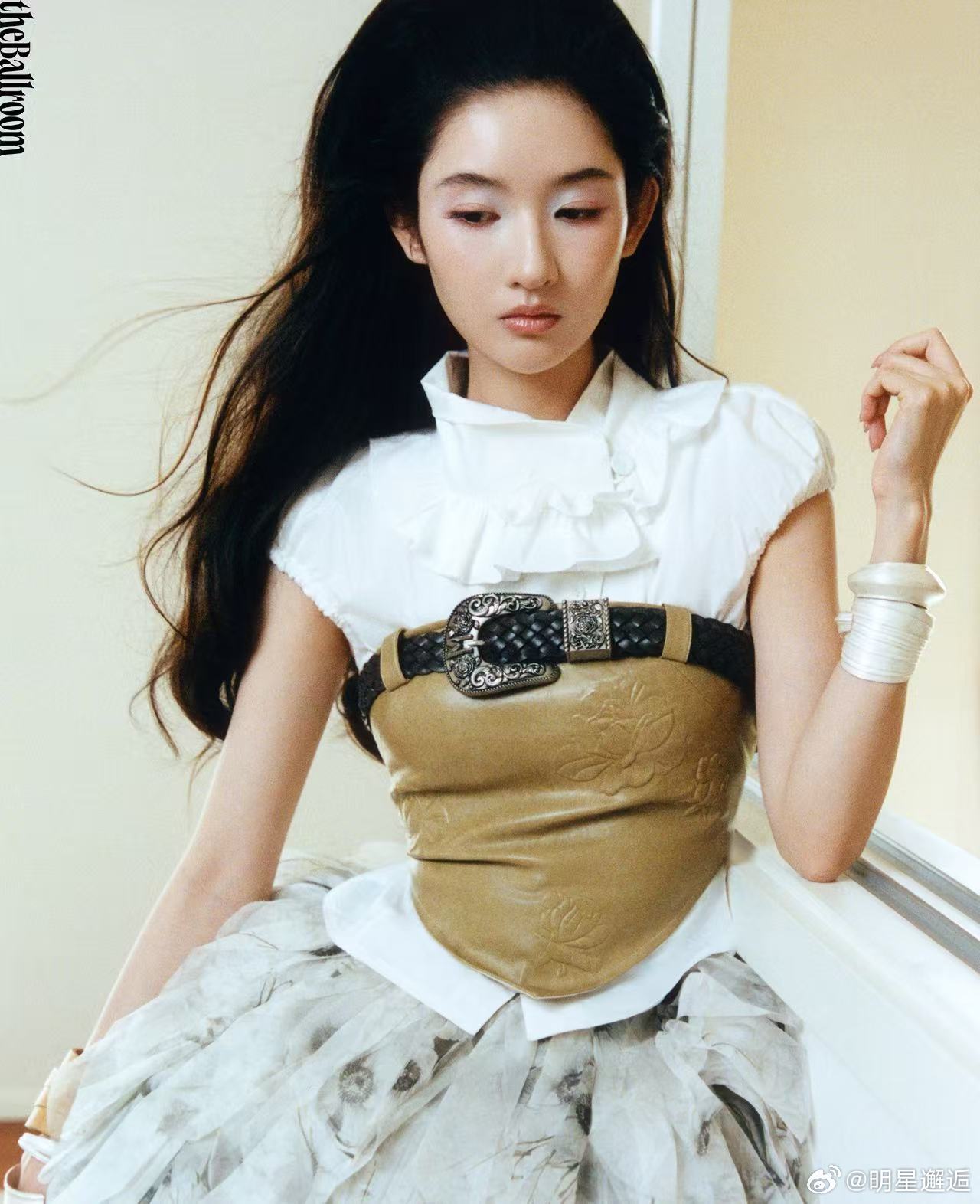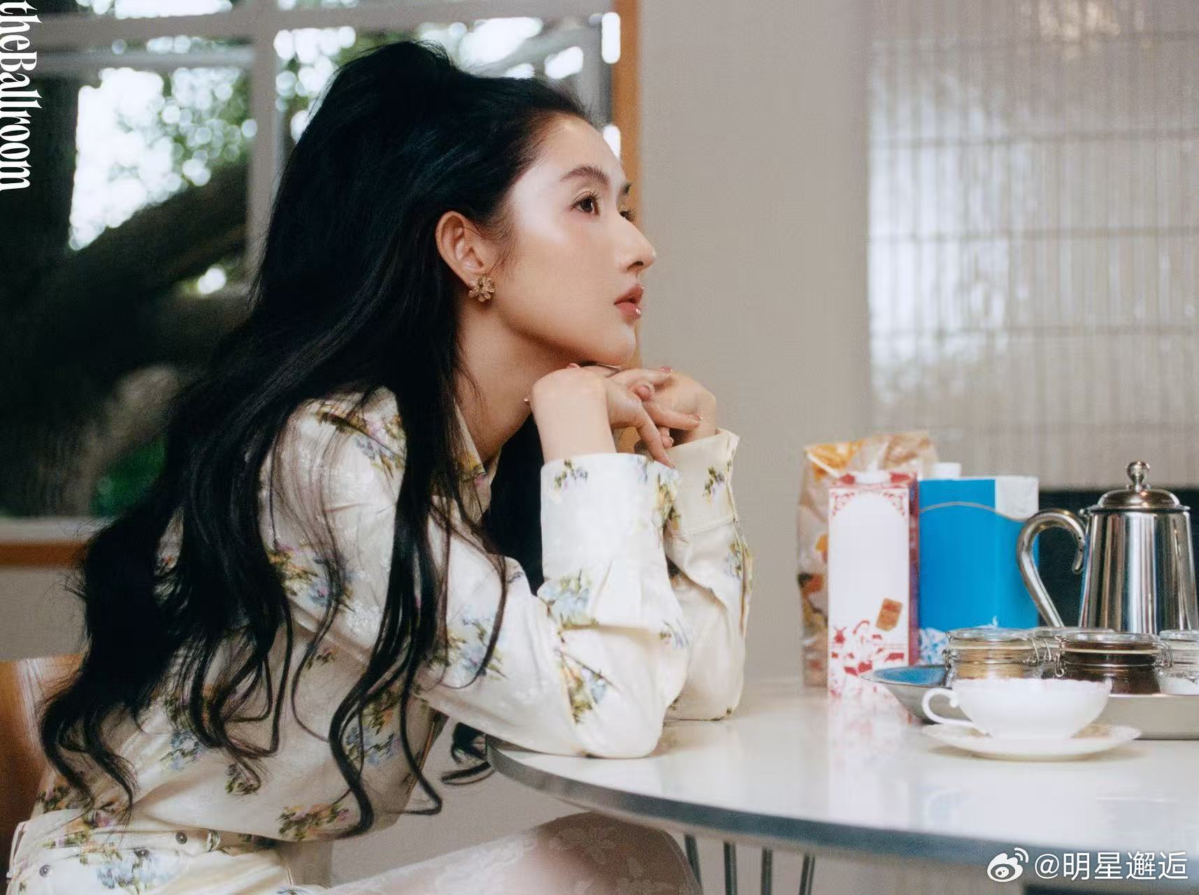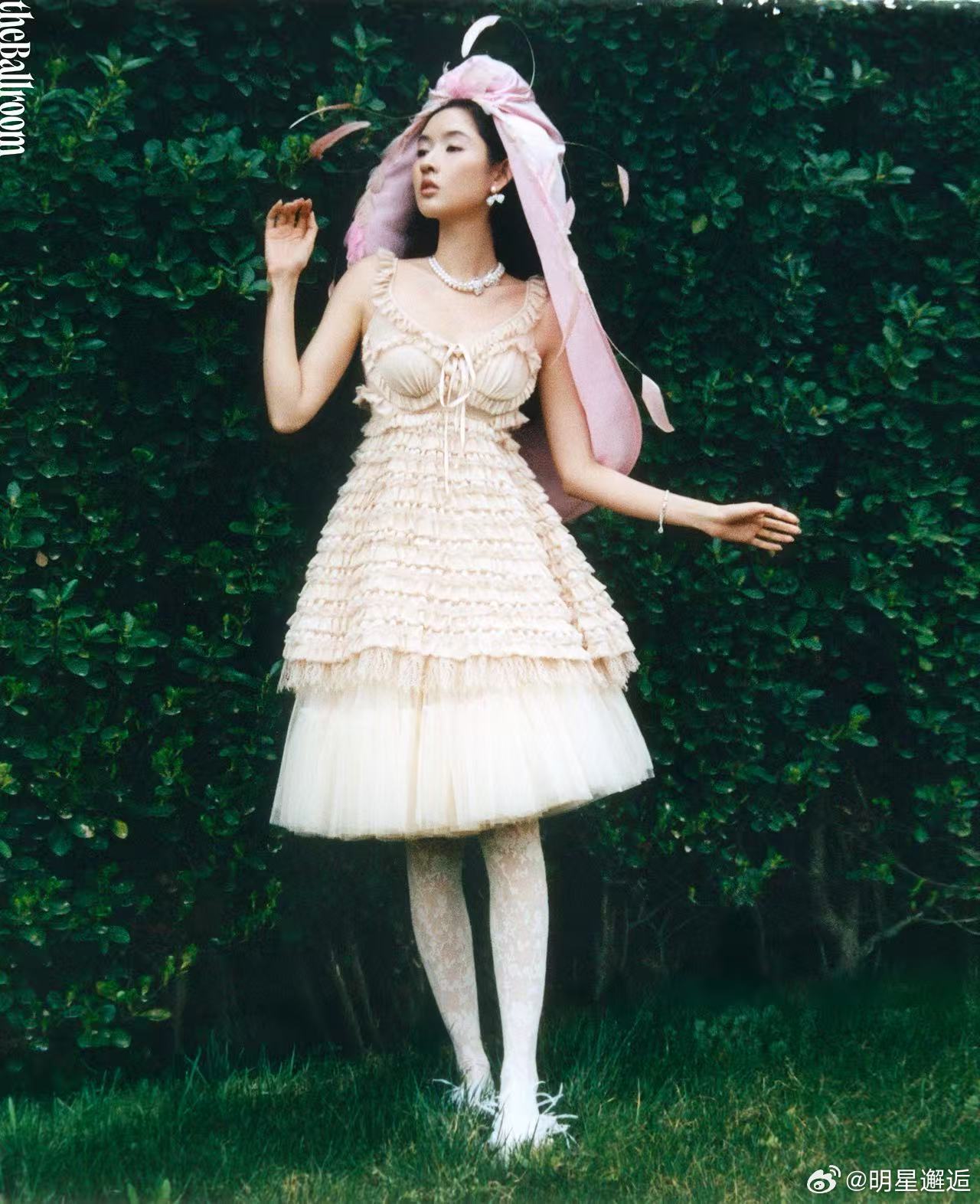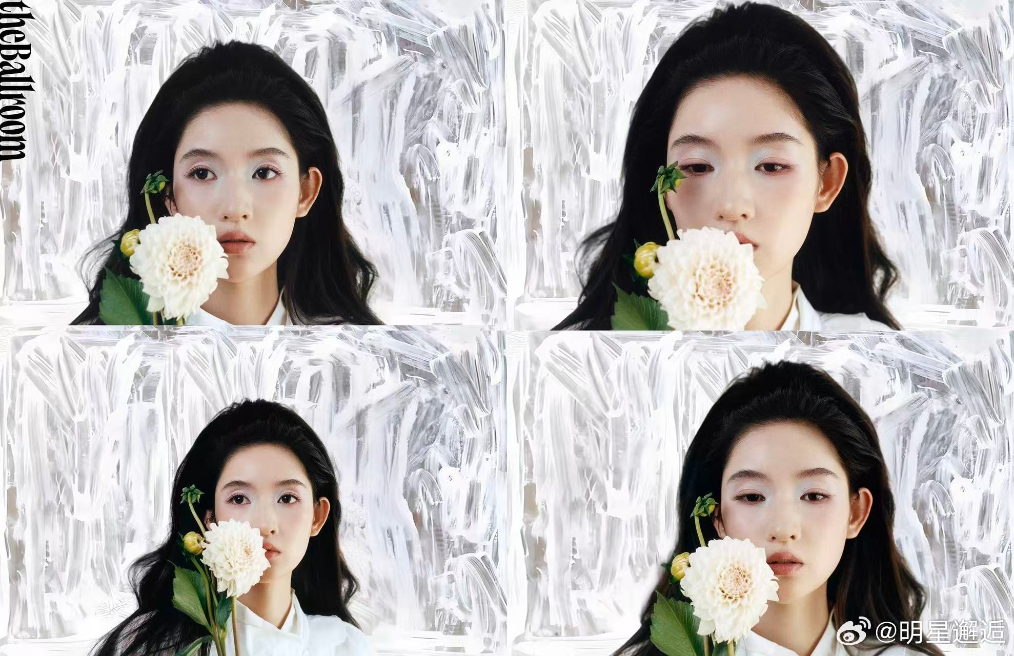 王玉雯花神降临清冷白裙配大丽花,油画感拉满,眉眼间的疏离感和灵气完美融合,王玉雯