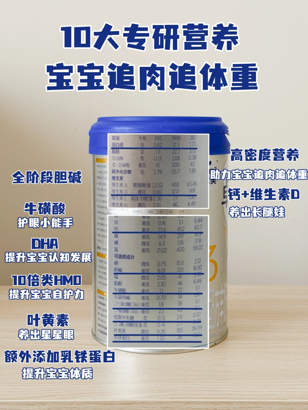 其他营养配方也没落下!10大均衡营养覆盖成长需求,5维眼脑营养加强化乳铁蛋白,配比科学不过剩,好吸收不上火,可以助力宝宝的认知和自护力力成长不掉线,打好坚实的身体基础。而且配方0蔗糖、0香精、0棕榈油,干净无负担,对肚肚娇嫩敏感的宝宝超友好~