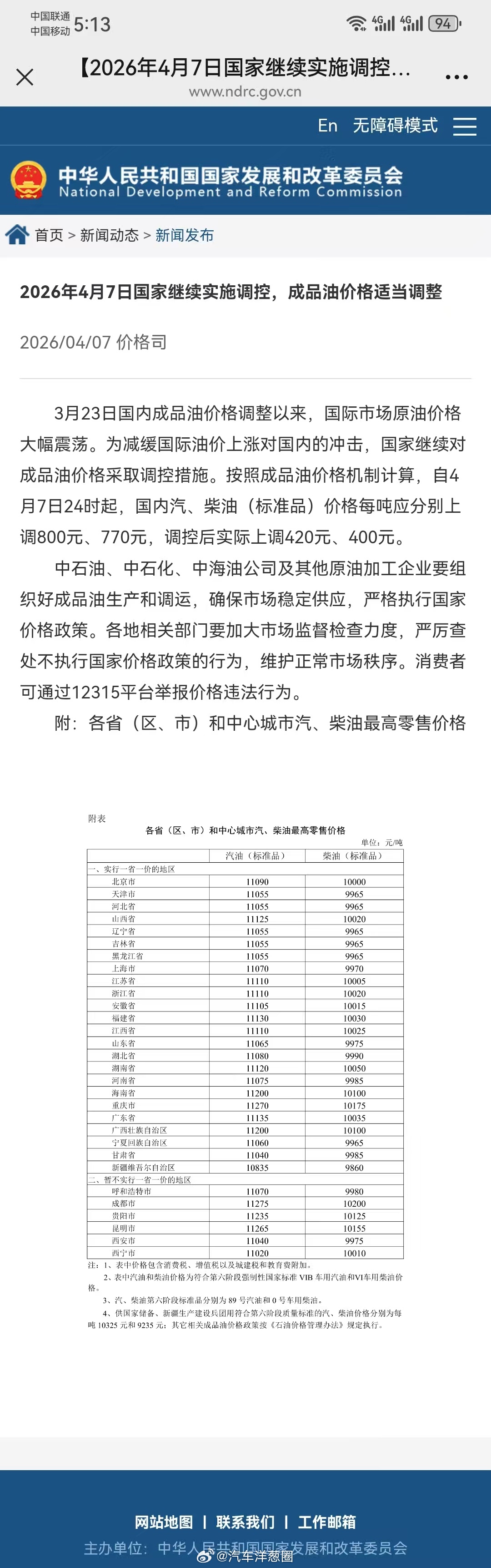 根据4月7日,国家发改委发布《2026年4月7日国家继续实施调控,成品油价格适当调整》,以下为原文: