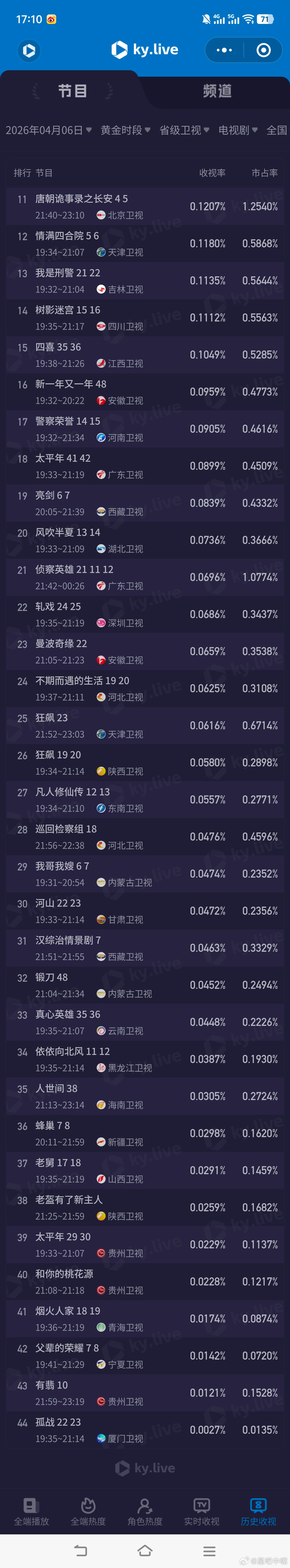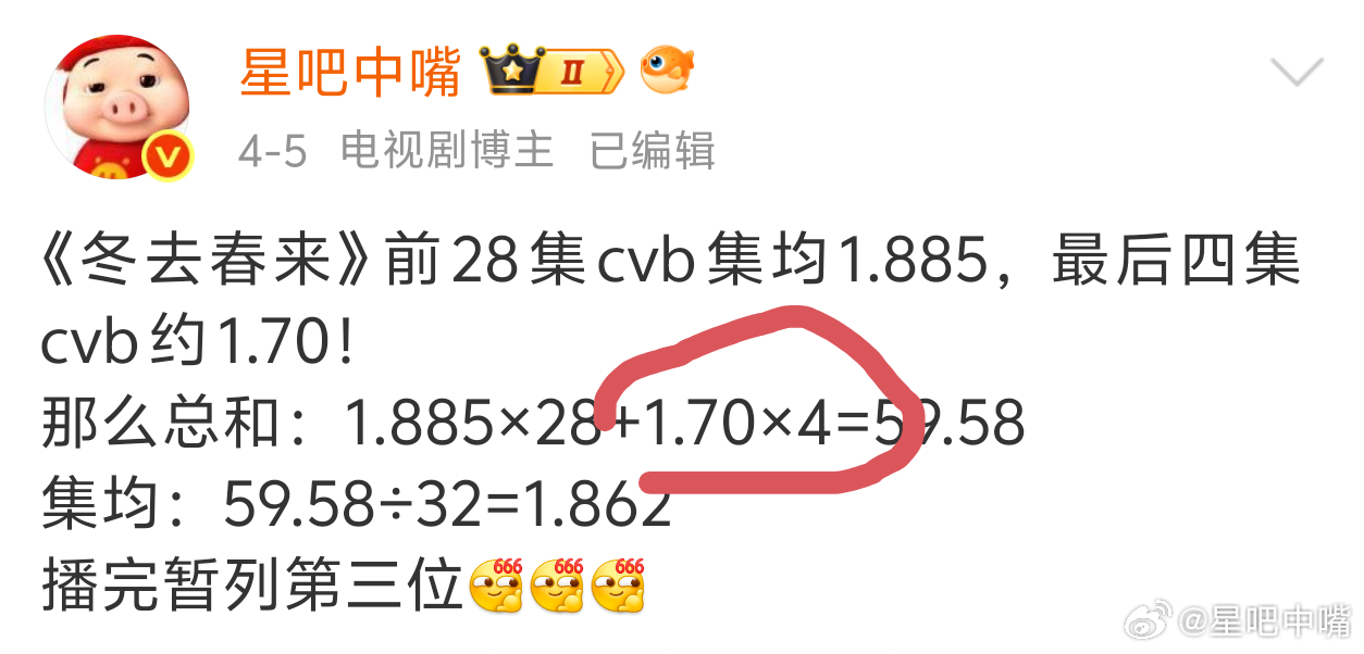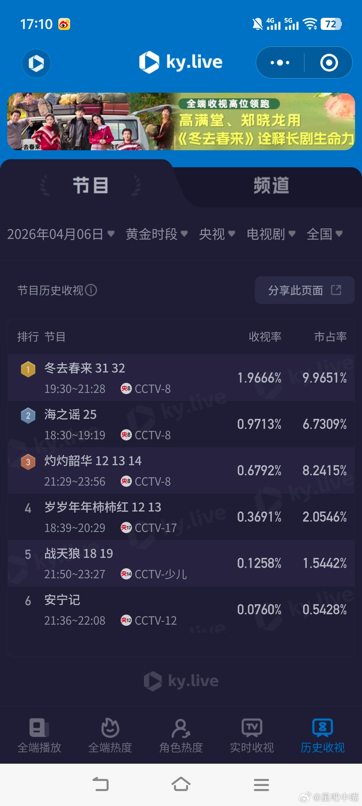 冬去春来 4月6日周一cvb收视日报:《冬去春来》全集集均1.864!暂列第三!