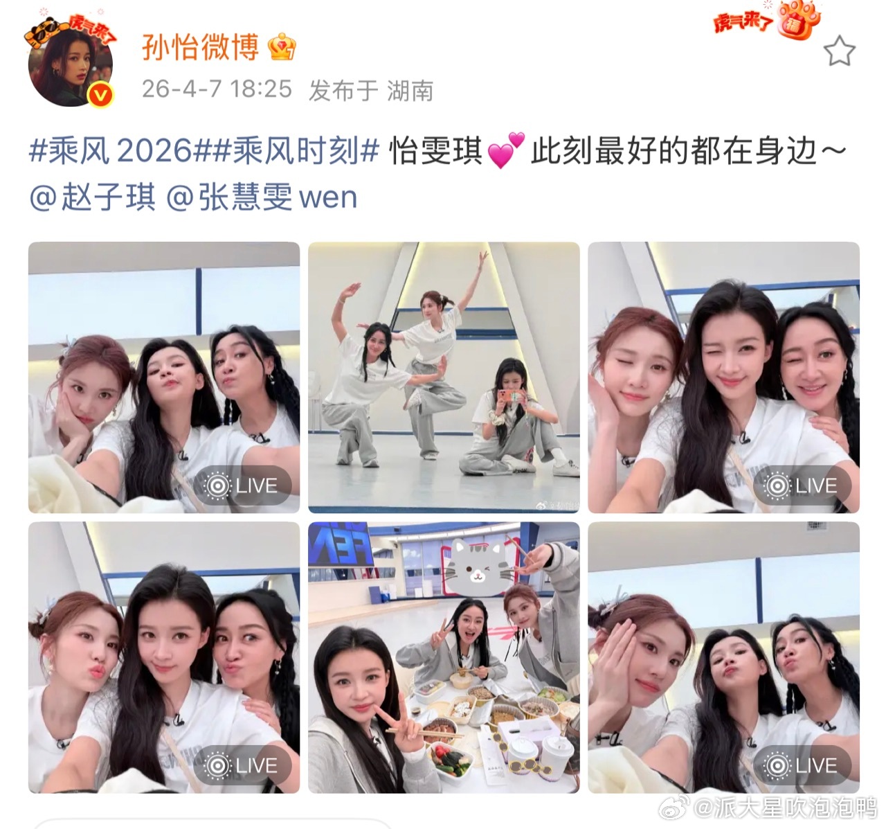 孙怡晒与张慧雯赵子琪合照孙怡和张慧雯赵子琪的同框合照好戳我,三位美女同框太养眼啦!乘风2026