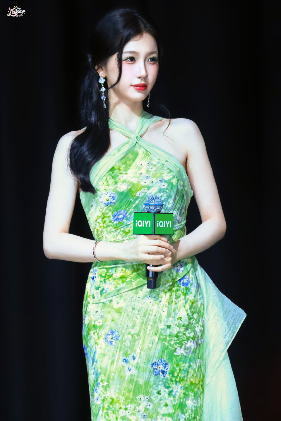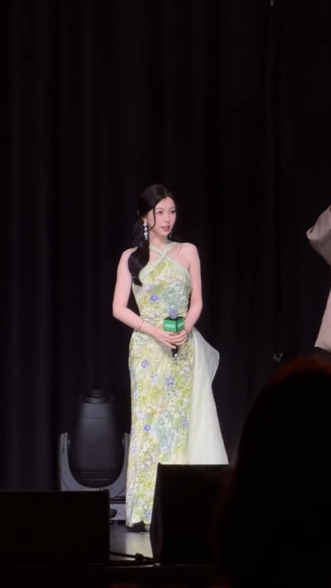 绿色长裙真的好优雅………好春天的一套造型吧🥹虞书欣绿色挂脖礼服造型