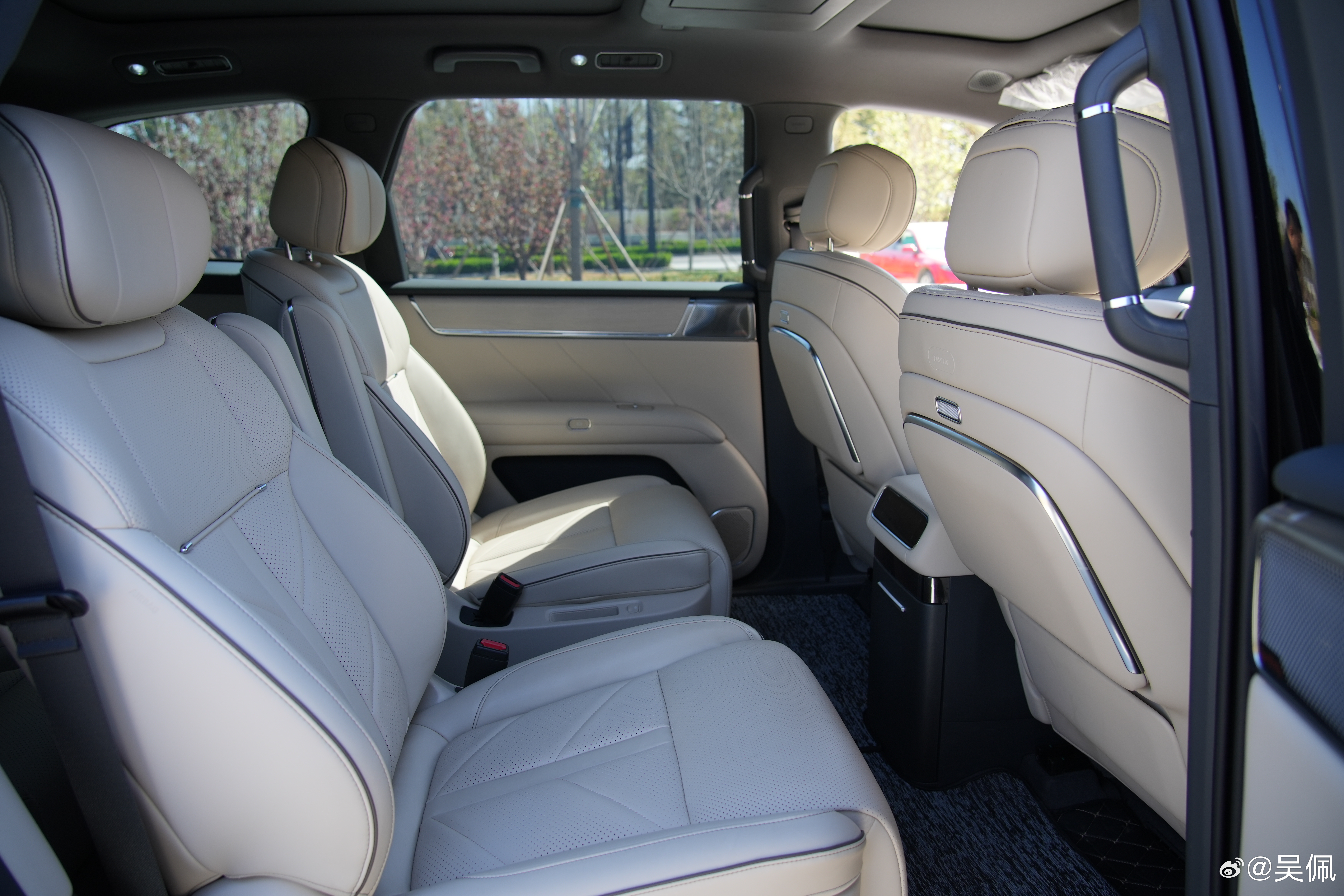 座椅这里再说一个小细节,华境S座椅的零部件供应商是延锋。这个供应商之前是给奔驰宝马做供货的,现在也给问界M9做供货。这台华境S的座椅骨架,其实是和问界M9一模一样的。