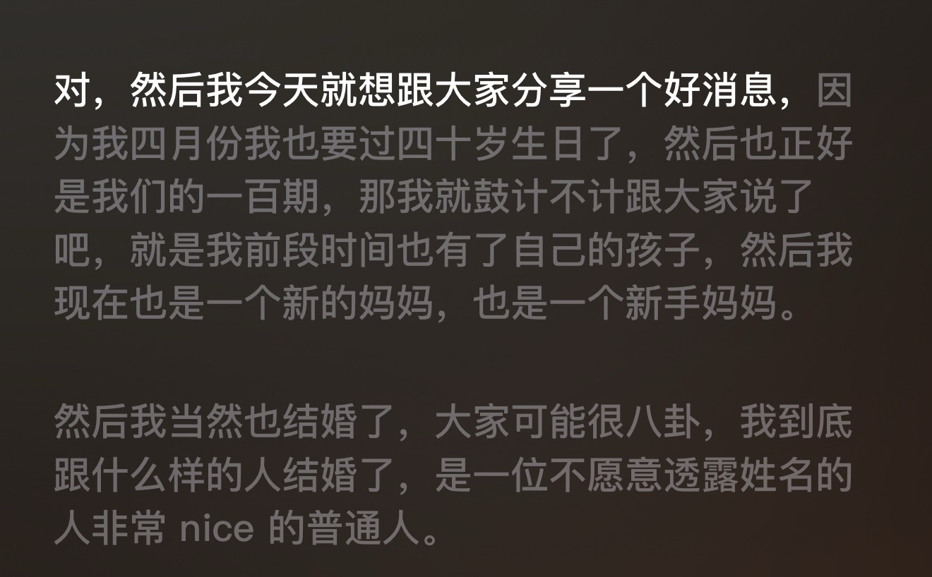 思文在播客里提到自己已经再婚,并且生了个儿子!对方是一个普通人。