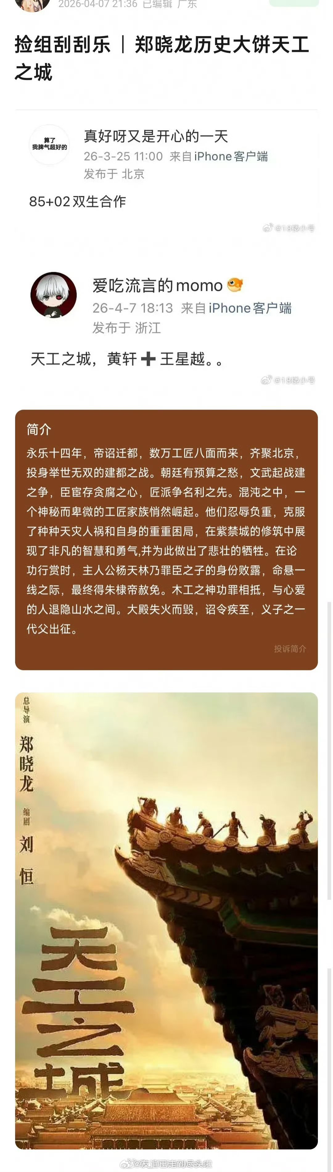 🍉《天工之城》黄轩,王星越郑晓龙导演+刘恒编剧的古装正剧,超级大饼,王星越资源