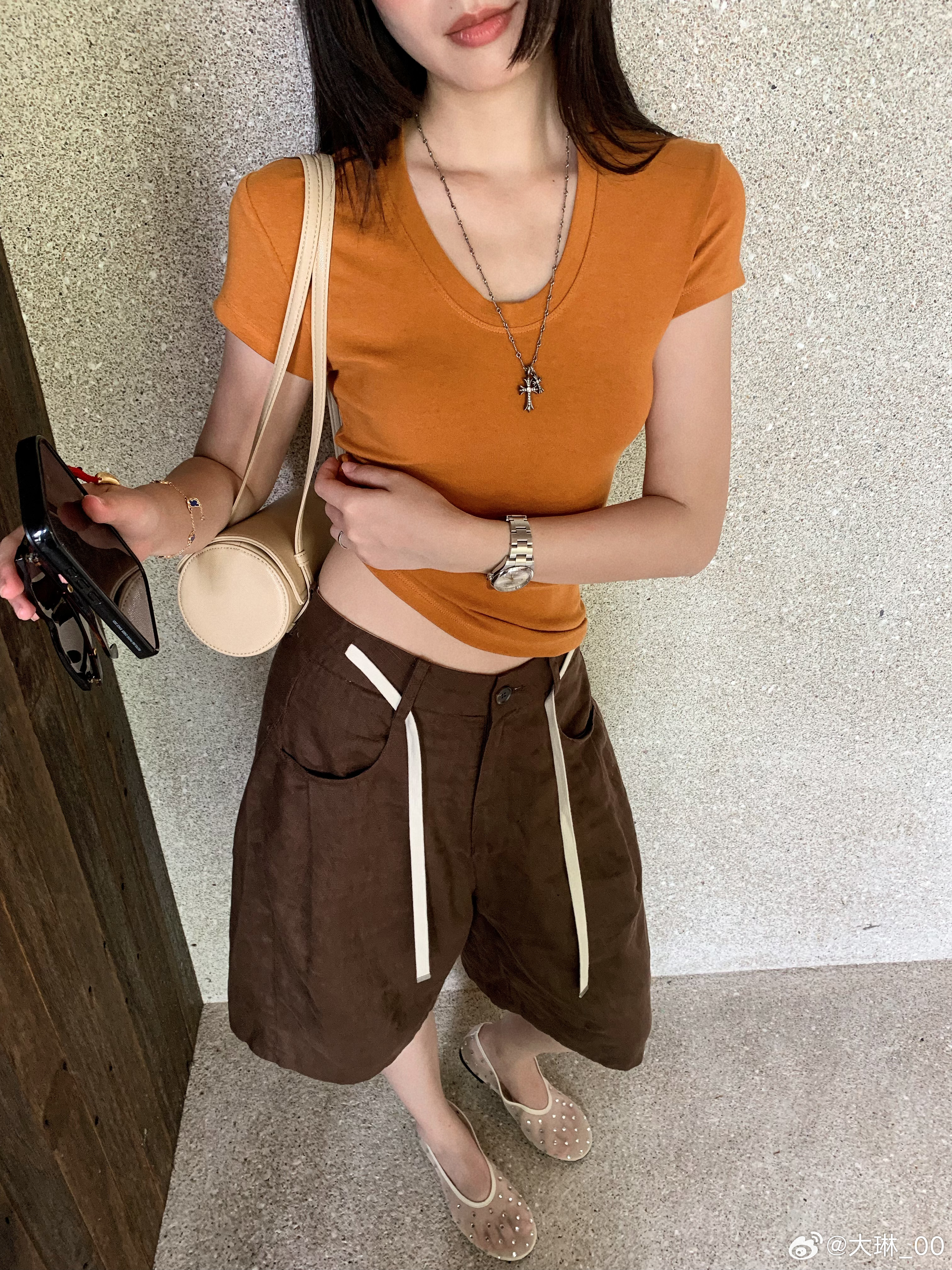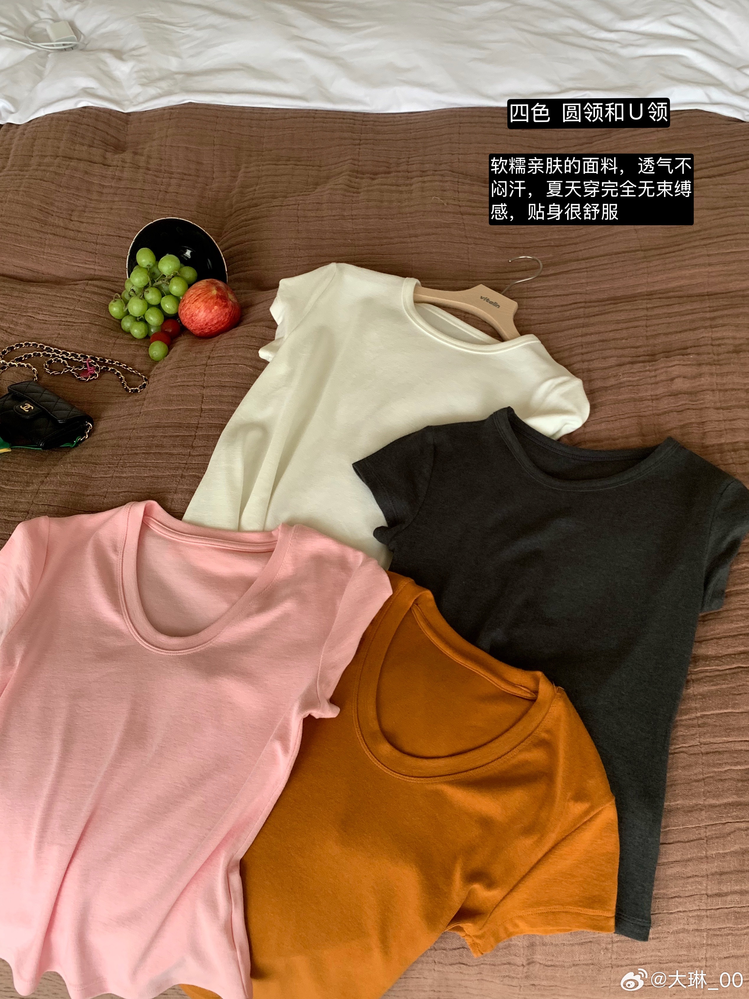 夏日基础百搭T做了四色 U领和圆领两个版本哦修身但不紧绷的剪裁把我们的身形修饰的刚刚好💕