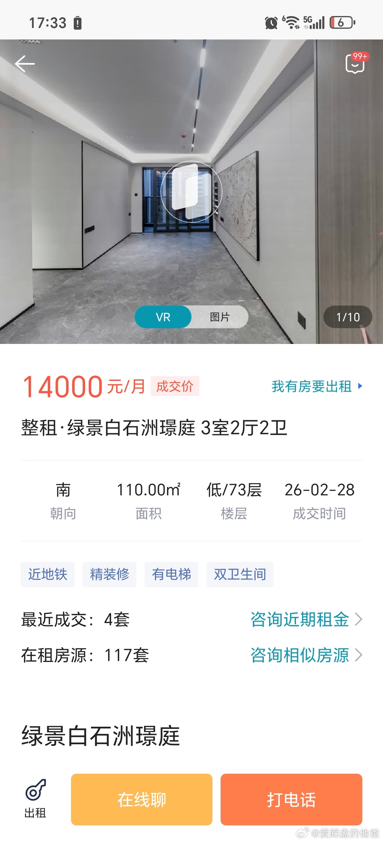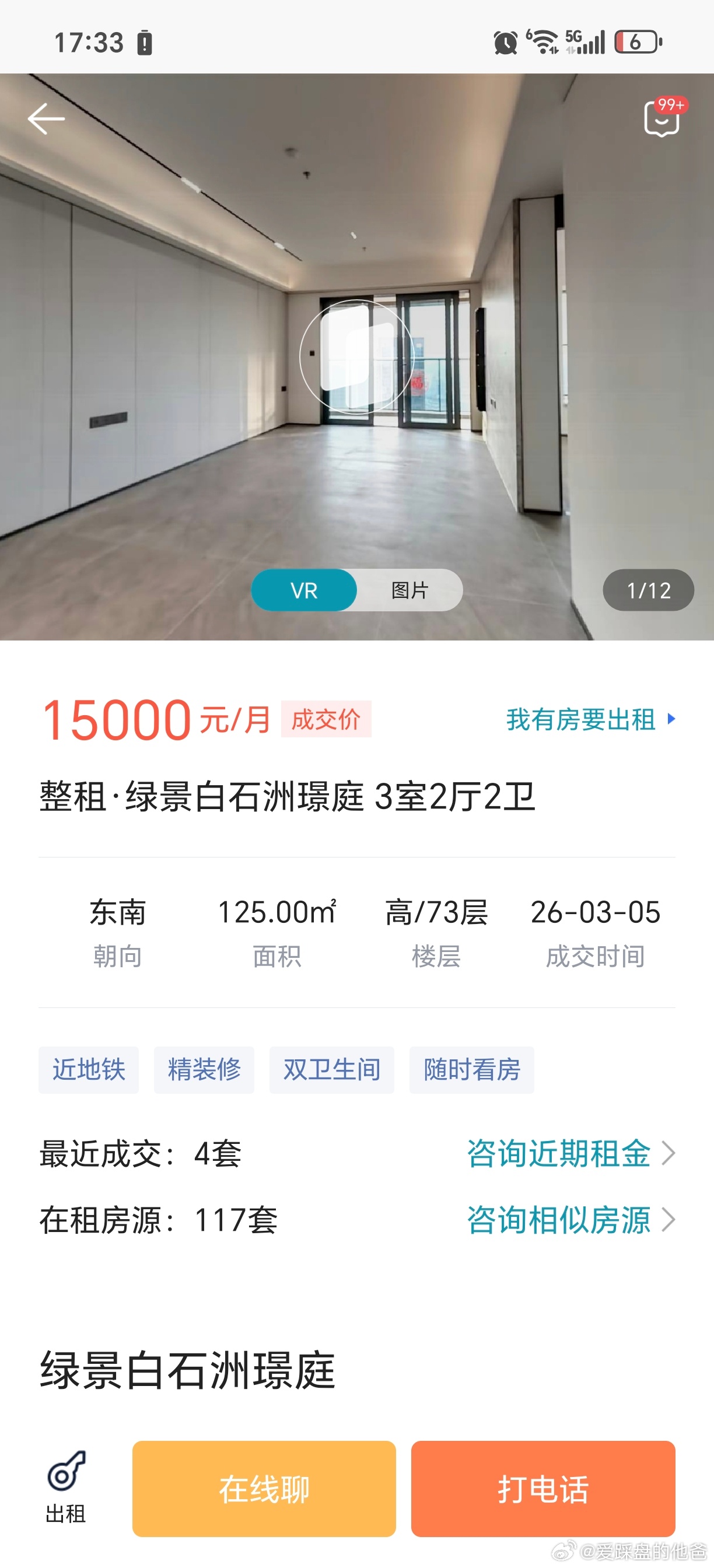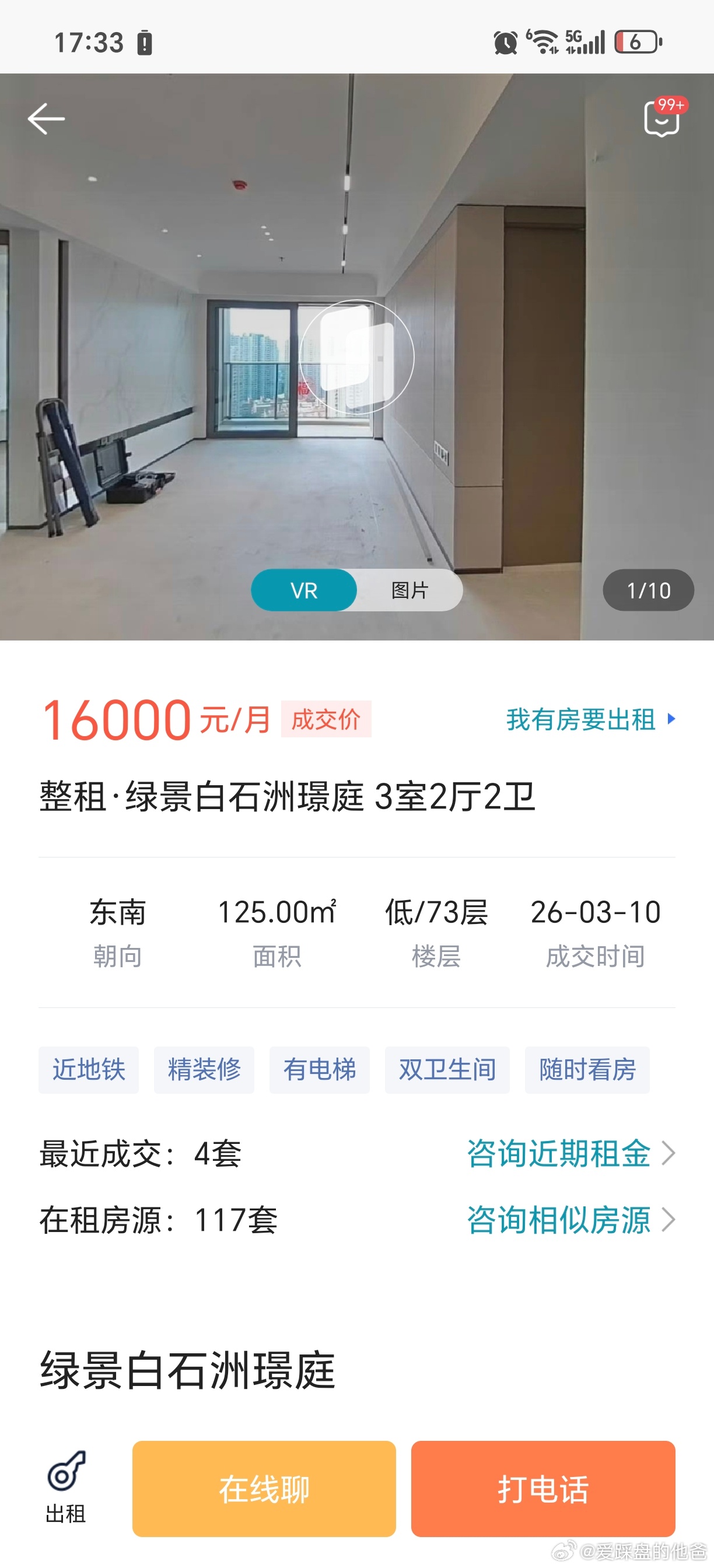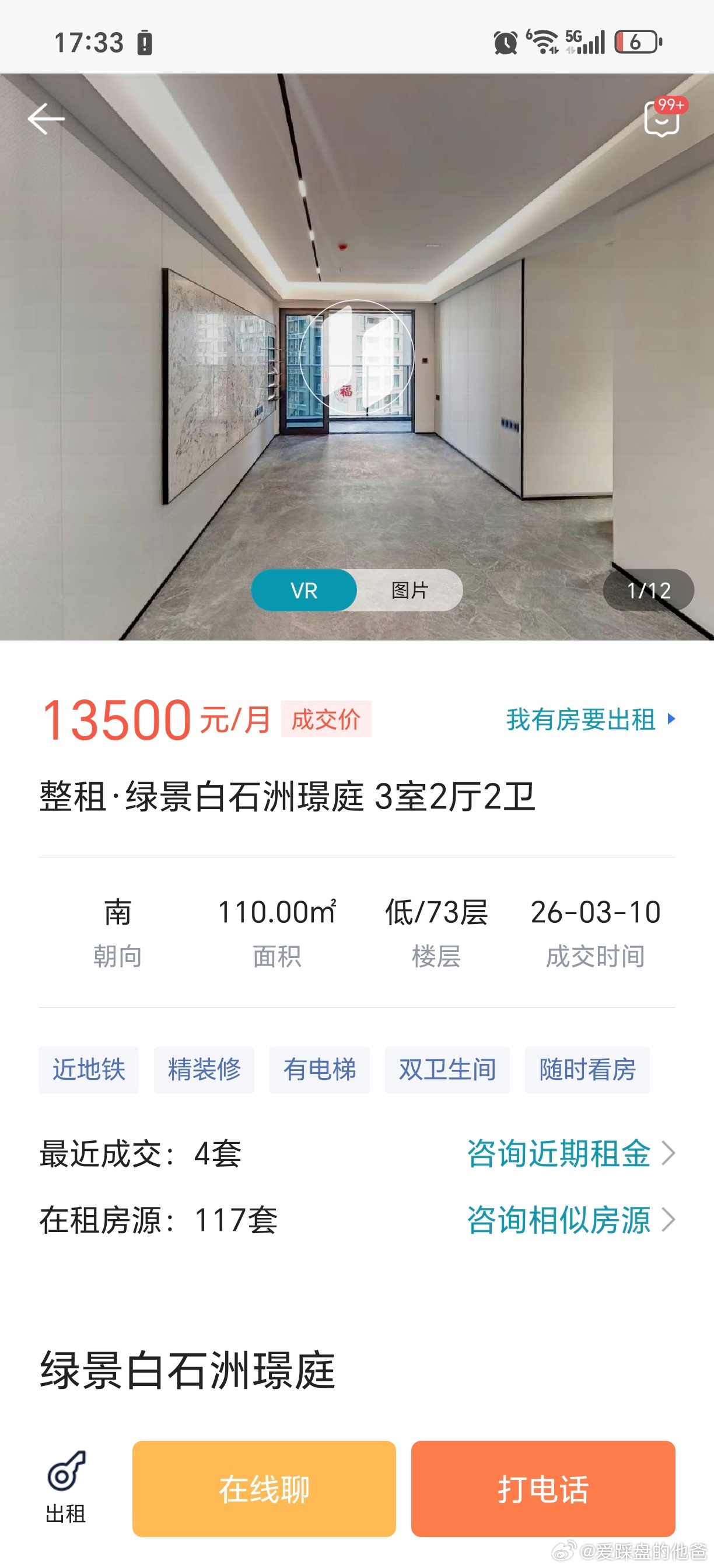 绿景白石洲璟庭,三房租金12000-16000,算高吗?