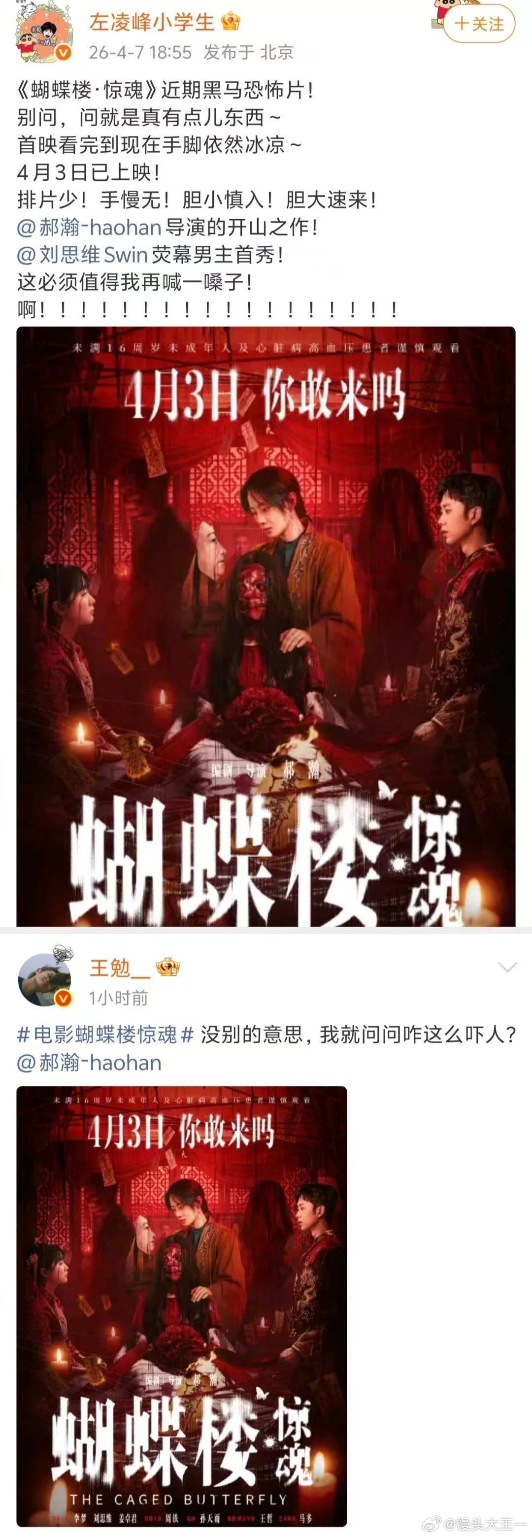 沈腾马丽为蝴蝶楼惊魂打call蝴蝶楼最强喜剧人应援 看到沈腾马丽都在为这部片宣传,瞬间对蝴蝶楼惊魂充满期待,中式惊悚的氛围感已经有了
