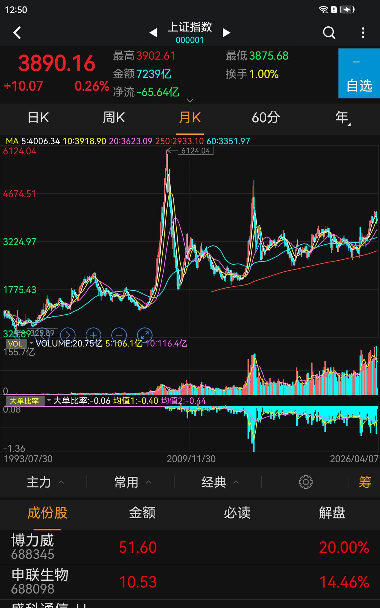 看看我们月K图,其实也不差,只是中途两次异常波动,由于用力过猛,以致休养生息二十年,现在,养精蓄锐已完成,重归牛途,开启伟大祖国的世纪长牛,尽情期待积极参与吧。
