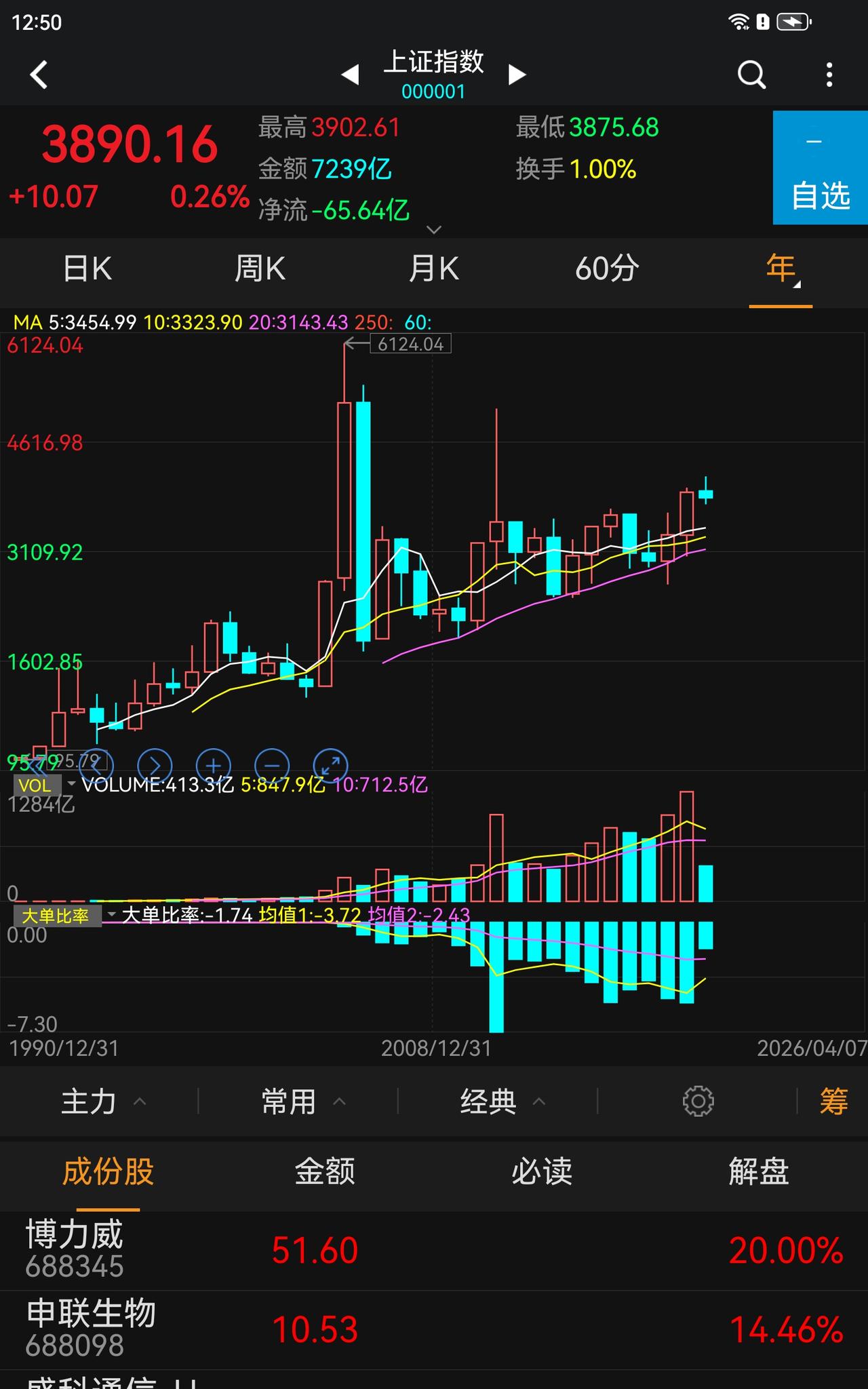 看看大A的年K图,其实是一幅长牛图,就是有点慢,但是很稳健。