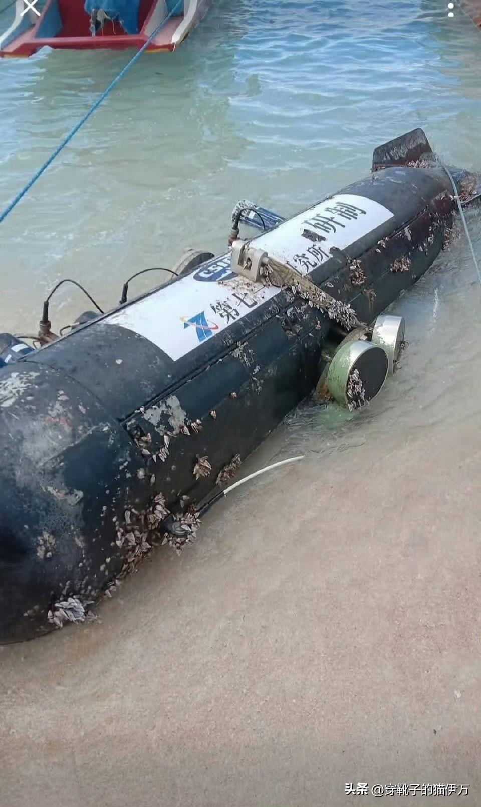 貌似无人潜航器被印尼渔民捞走了,艇身上有CSIC(即“中船重工”)和汉字“第七一〇研究所”的字样。