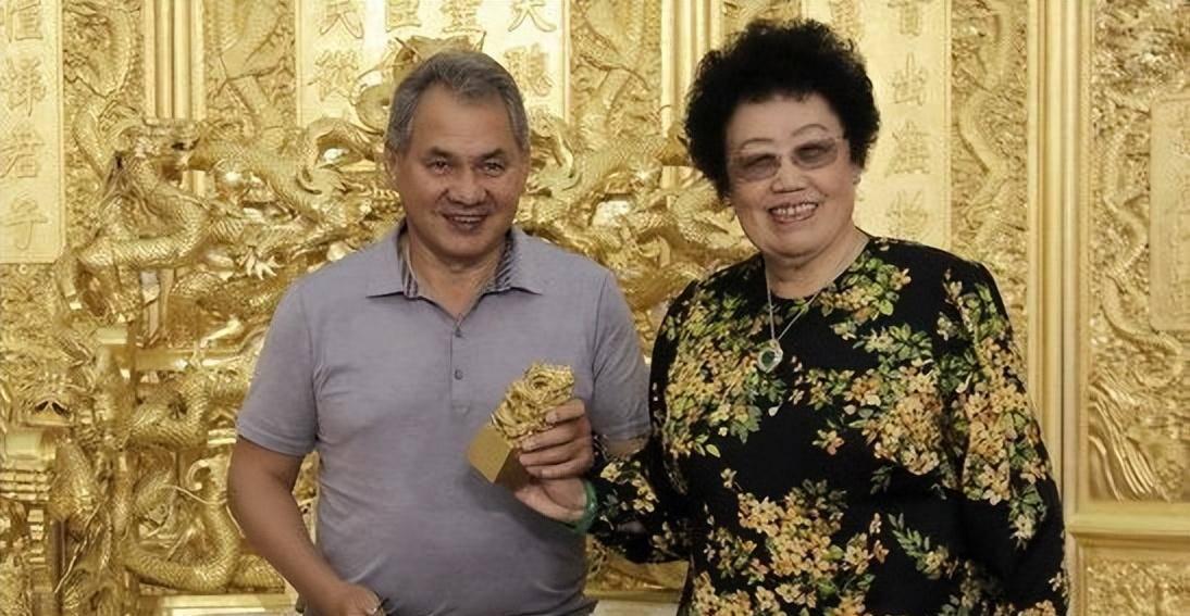 陈丽华,和俄罗斯原国防部长邵伊古的合影,原因竟然是贵为俄国防部长的邵伊古,特别喜欢东方建筑,以及特别喜欢东方的紫檀文化。