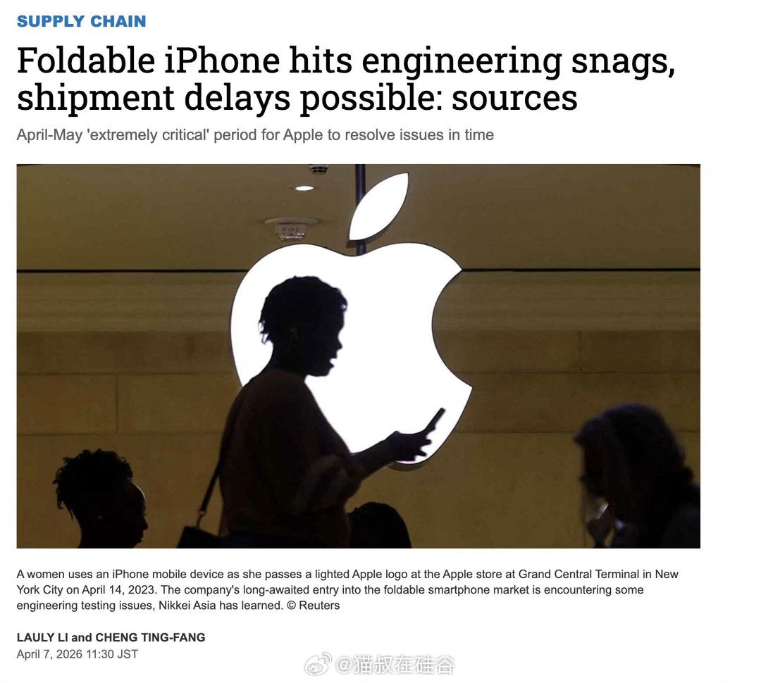 今早,日经亚洲爆料称,苹果首款可折叠iPhone在工程开发阶段遇到比预期更复杂的问题,最坏情况下首批出货可能延迟数月。这一消息迅速引发市场担忧,苹果股价盘中一度暴跌约5%。