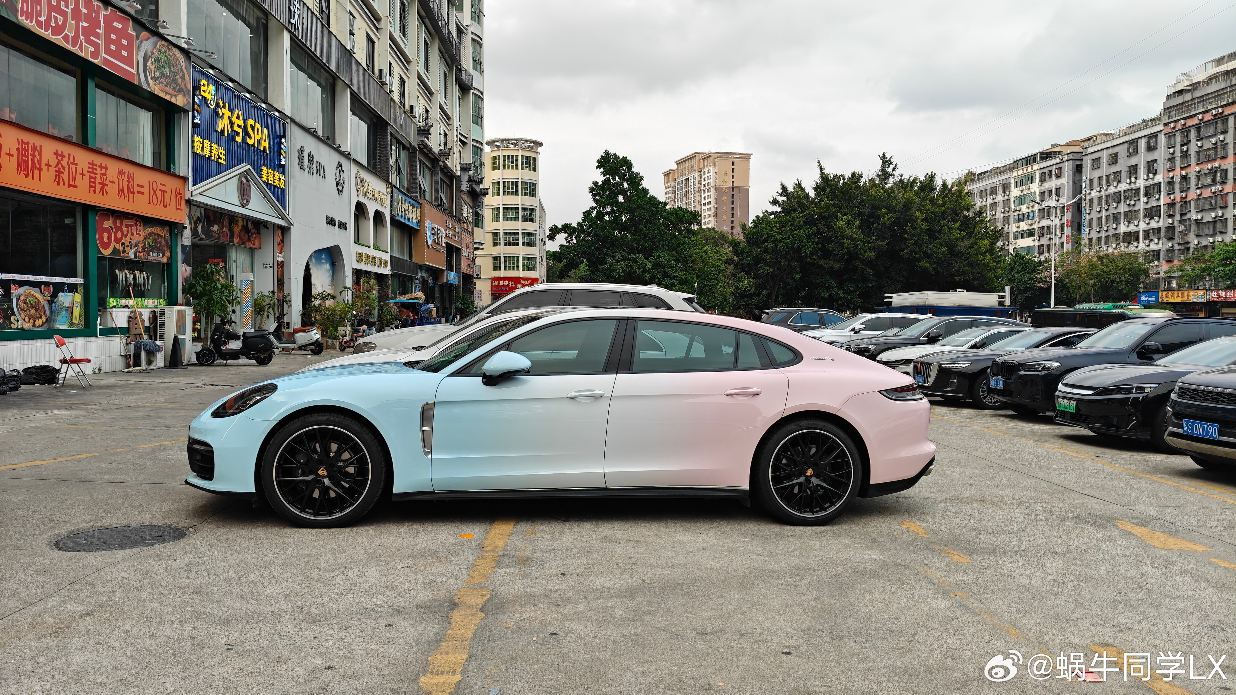 保时捷帕拉梅拉的渐变色车衣,这种双拼渐变既保留了保时捷的运动气场,又多了一份软萌少女感,开在路上绝对是回头率收割机,甜酷平衡得刚刚好! 全民拍车