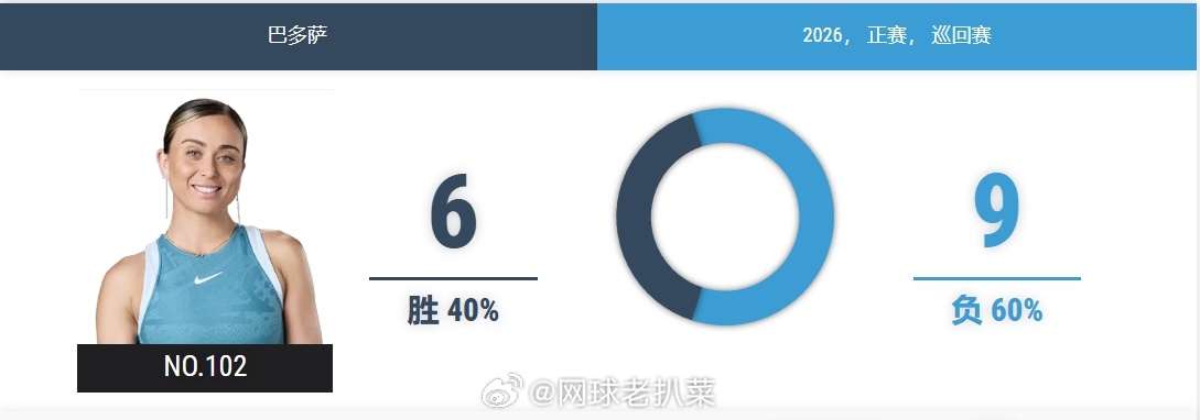 WTA500林茨站首轮,持外卡参赛的巴多萨以4-6 6-7(5)负于奥地利本土18岁新星塔格尔,又是巡回赛一轮游。2026赛季复出至今,巡回赛战绩6胜9负。排名从高光时刻的世界前十,掉到如今的102位。
