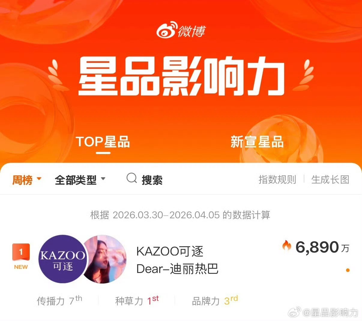 迪丽热巴代言可逐颈膜,星品影响力,周榜冠军!你姐还是你姐系列。