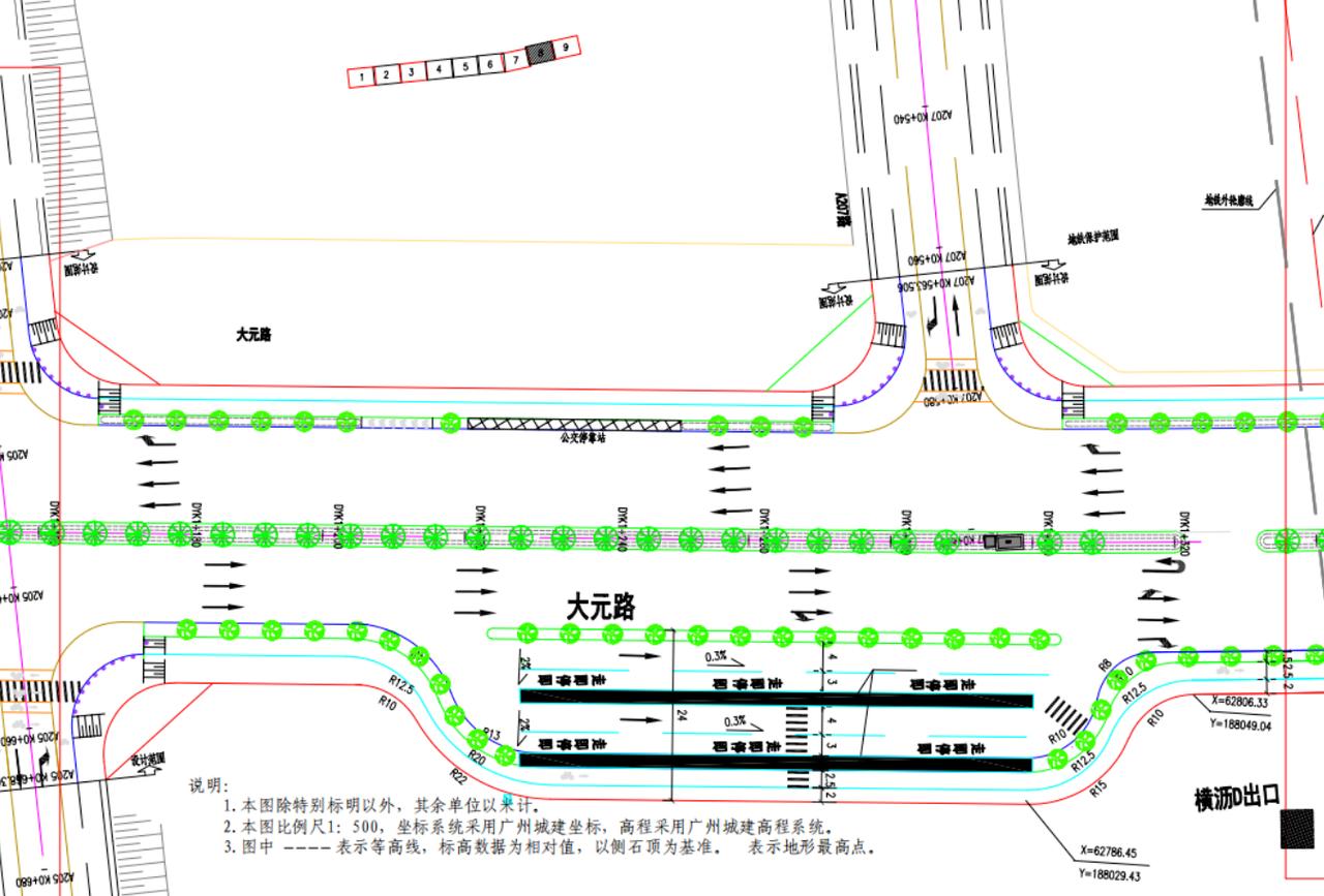 据了解,大元路浅港湾式停靠站占地面积约2300平方米,将紧贴大元路现状车行道旁设置两条候车道。结合交通流量、道路条件、建设成本等多方因素,项目团队制定专项建设方案:在大元路往凤凰大道辅道方向实施局部车道拓宽18米,拆除现有慢行系统,重新布设候车道、人行道及慢行通道。