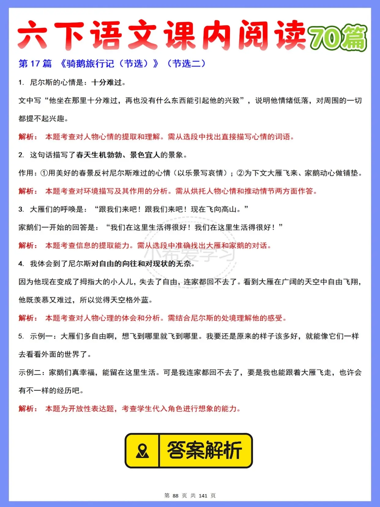 搭配阅读理解答题模板,帮孩子理清答题思路,夯实小学语文课内基础,稳步提升语文阅读能力,小学语文学习超省心💯