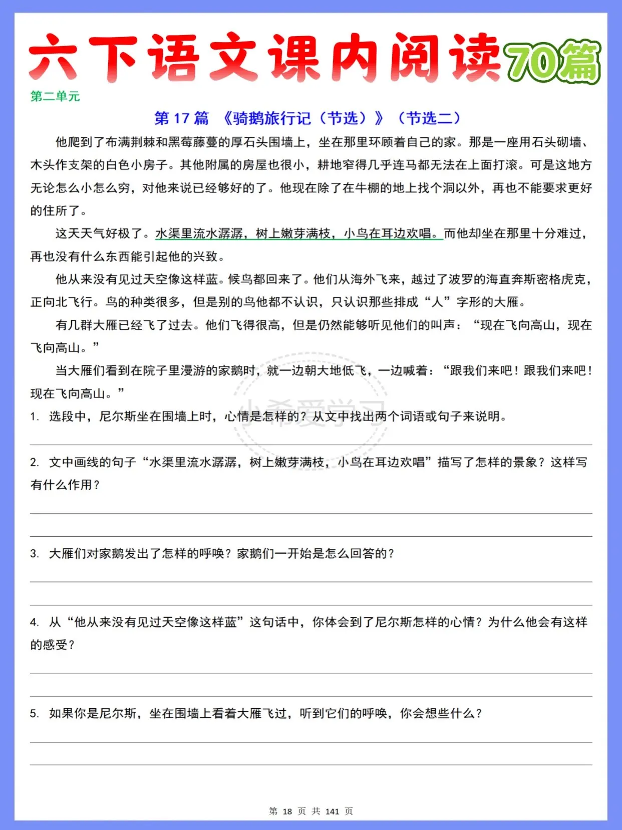 不管是小学语文老师备课,还是六年级宝妈辅导娃,这份六下语文课内阅读资料都超合适,直接码住给娃安排上就对啦~