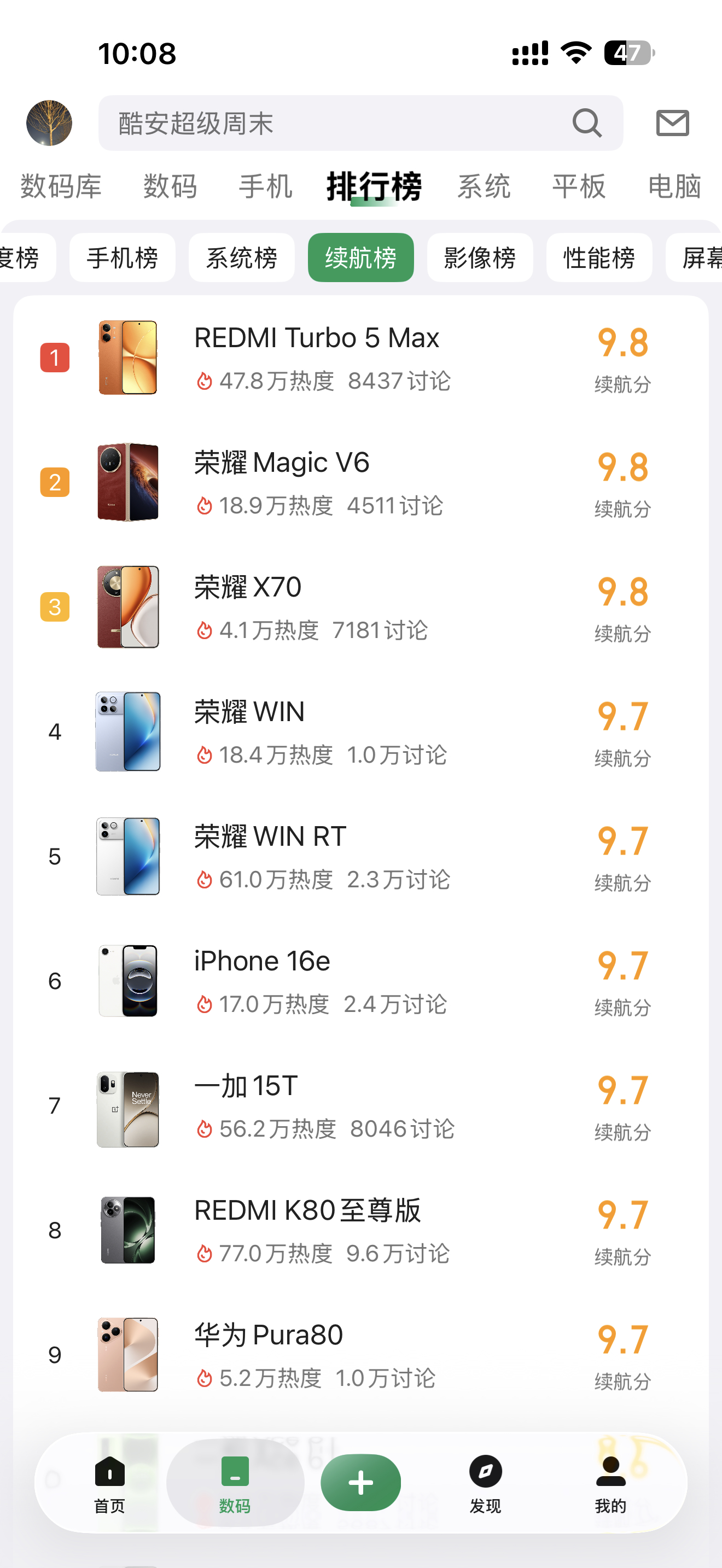 iPhoneFold发布时间还有必要等iPhone Fold吗?那个小胖墩造型的设计实用性各方面体验还有待验证,还不如直接入已经发布的成熟的折叠机,像荣耀Magic V6,酷安评分极高,特别是续航、性能这些方面,一个折叠机比很多直板手机的评分还高。
