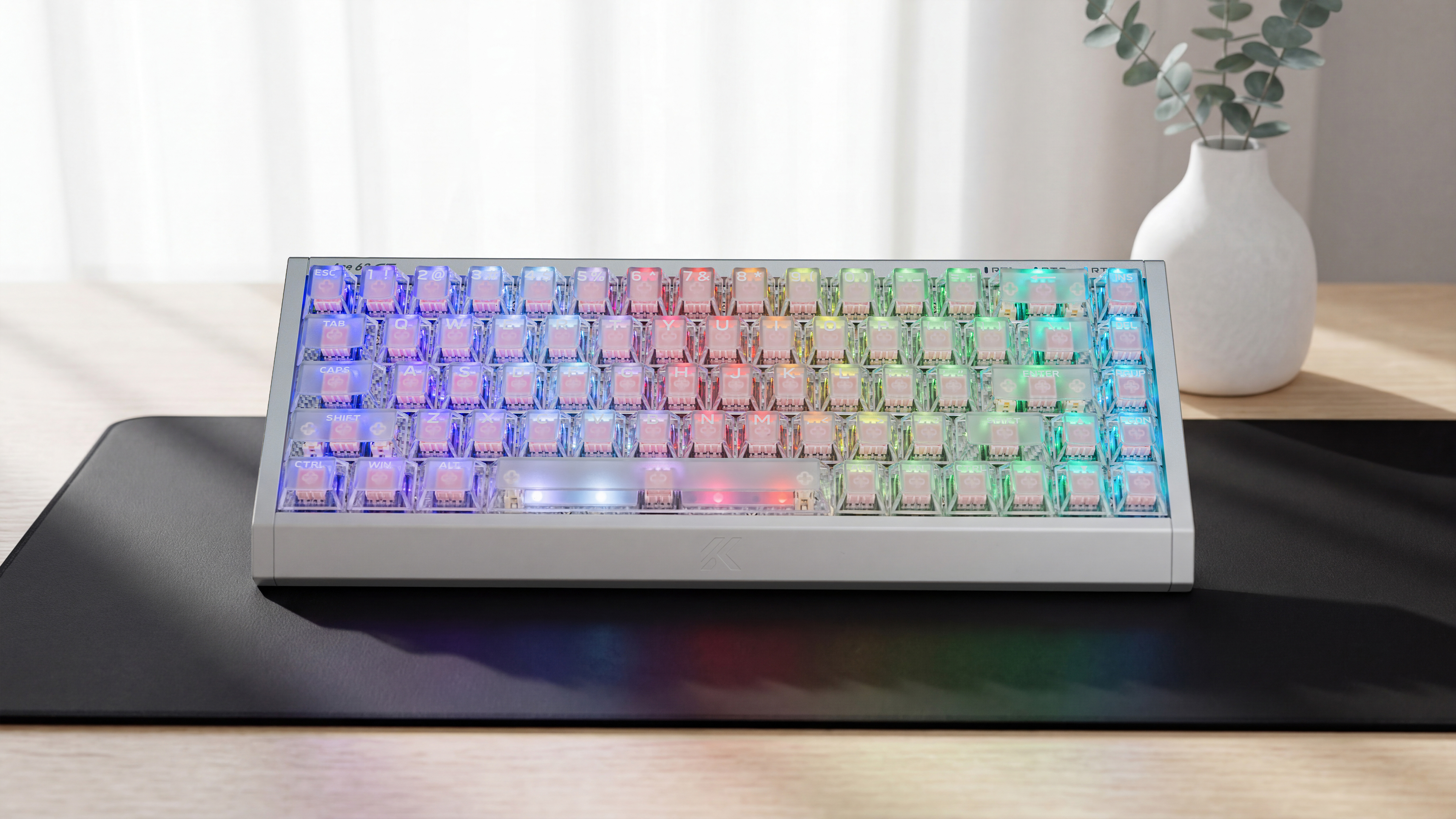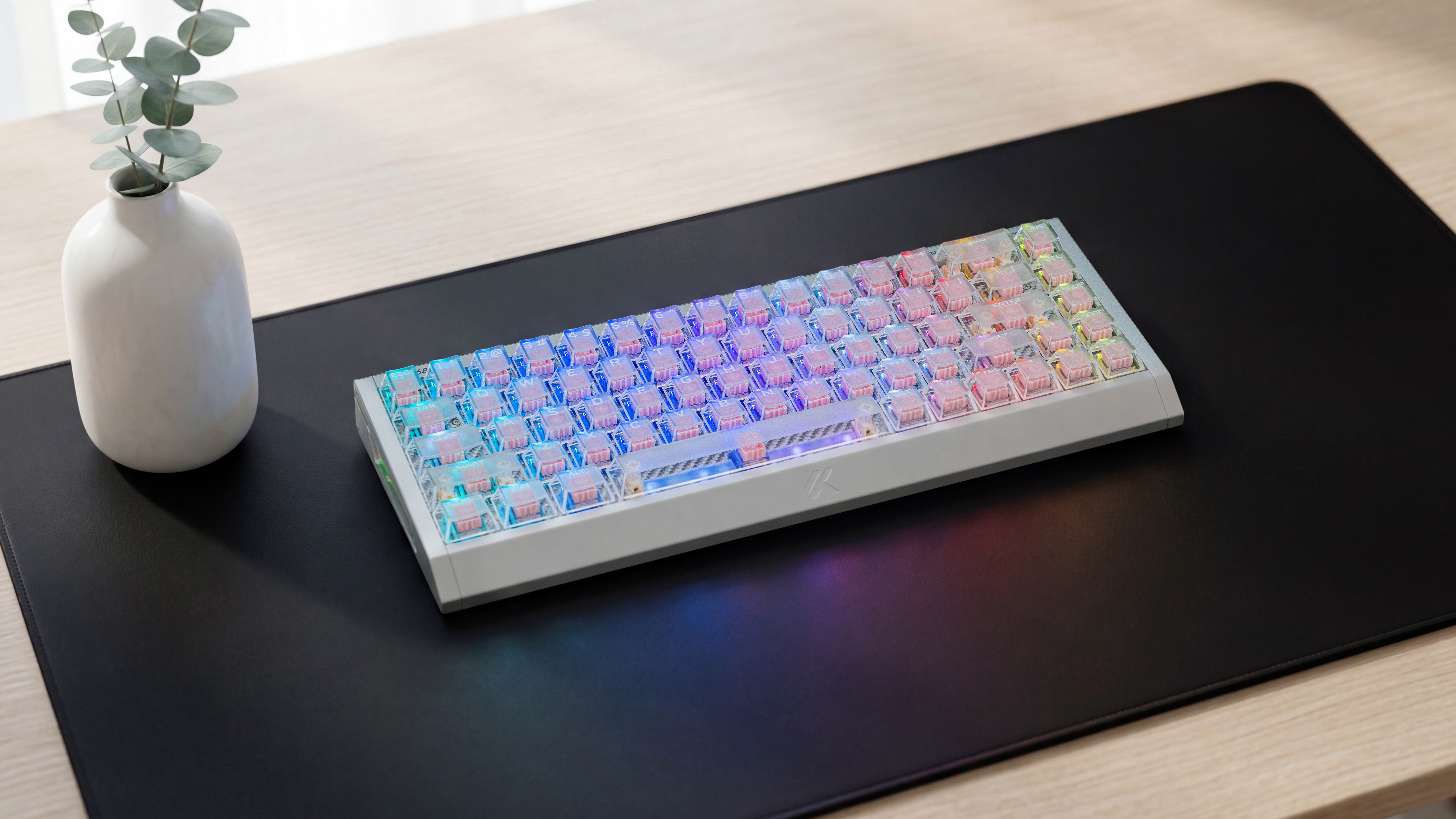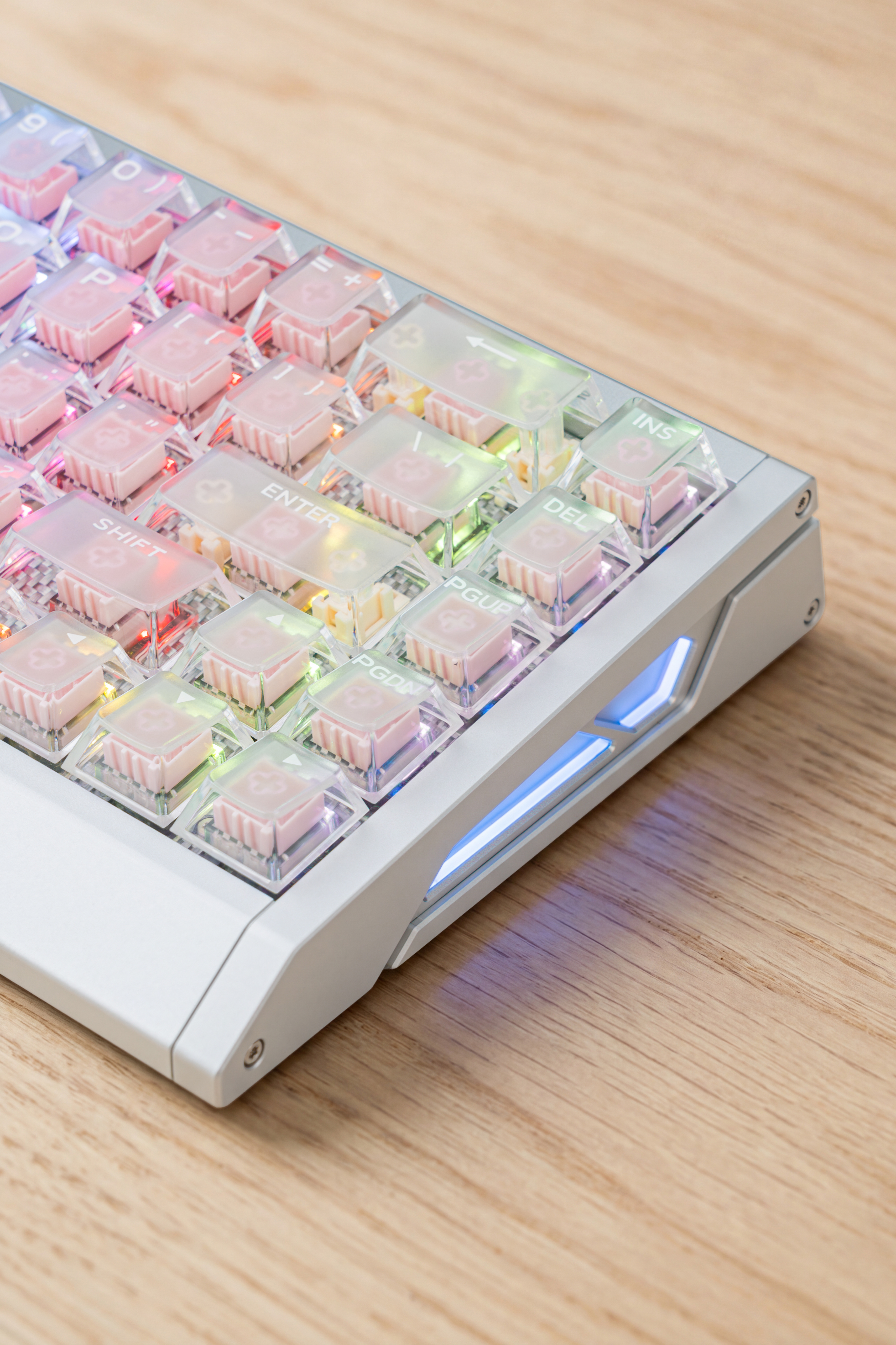 入了个迈从新品Ace 68 GT 电竞磁轴键盘,铝坨坨+机甲风的设计,而且分量也很扎实;背光+雾透键帽,侧板也有RGB光条,视觉效果也很不错,用网页驱动就可以设置光效。