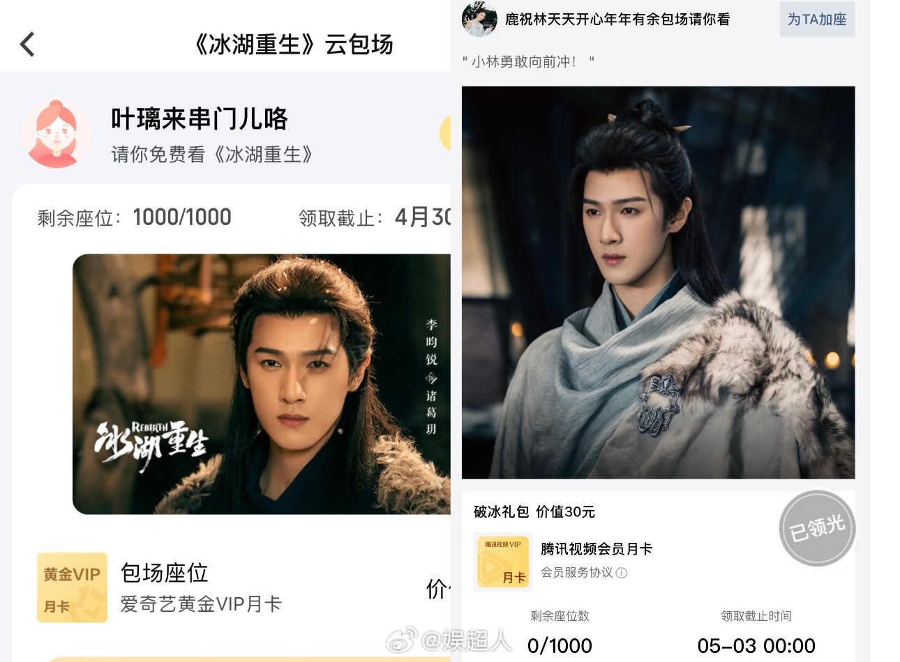 白鹿双平台包场李昀锐新剧白鹿双平台云包场李昀锐冰湖重生