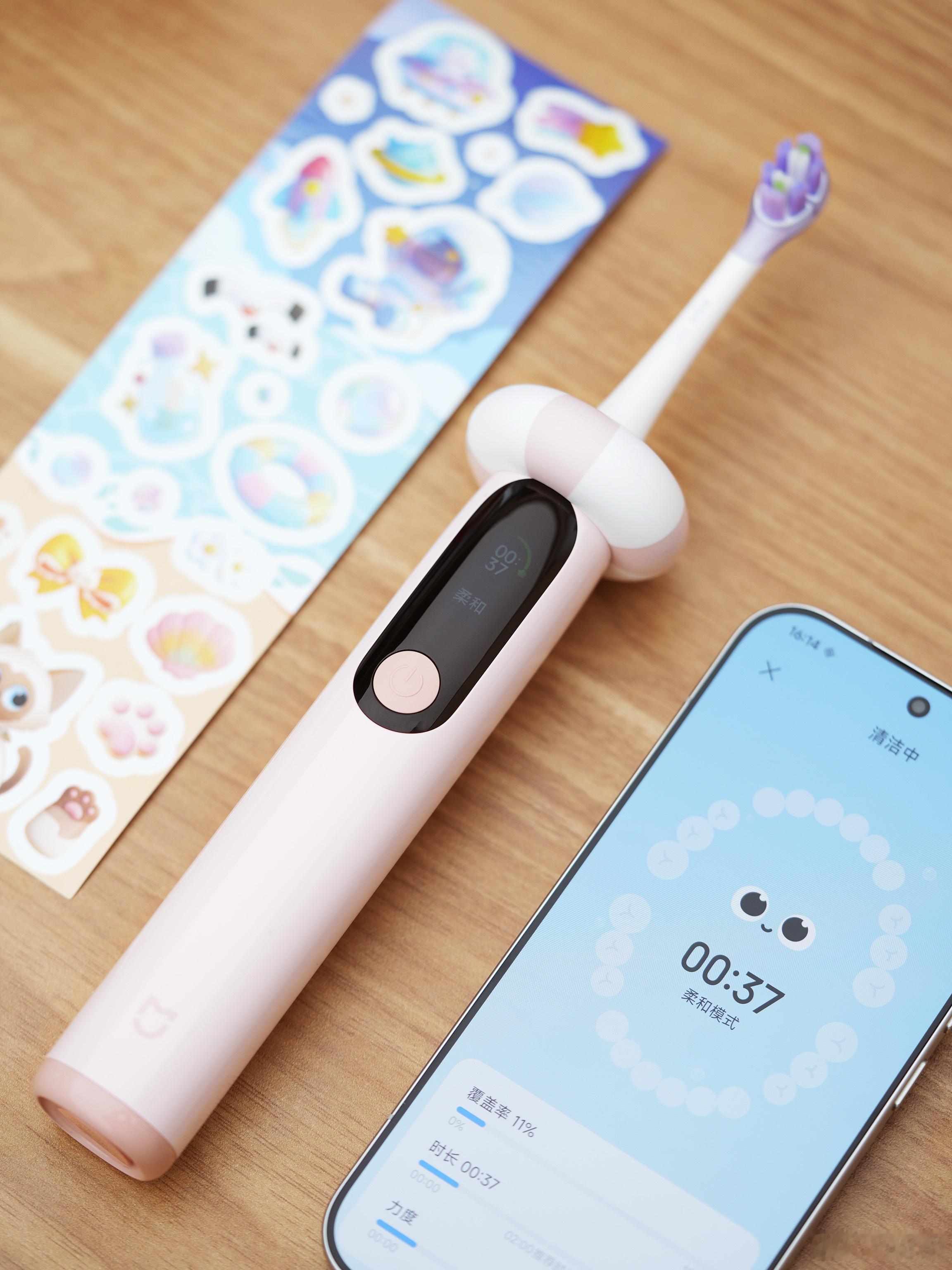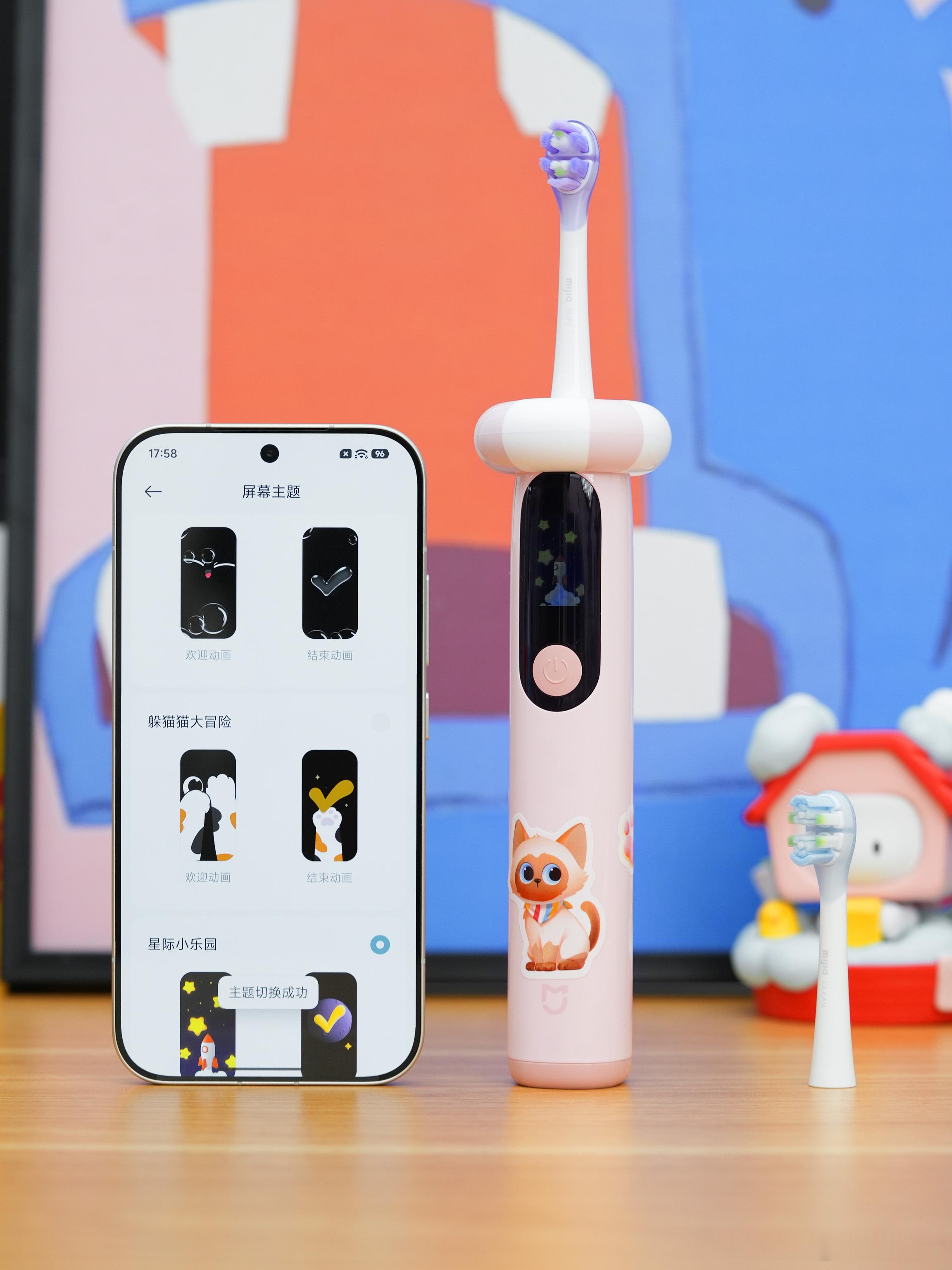 外观非常可爱,也有很多可以设置的屏幕主题,非常适合小孩子。刷牙时的趣味引导可以让他觉得刷牙是件有意思的事情,刷够两分钟还有声音鼓励,正向引导儿童好好刷牙