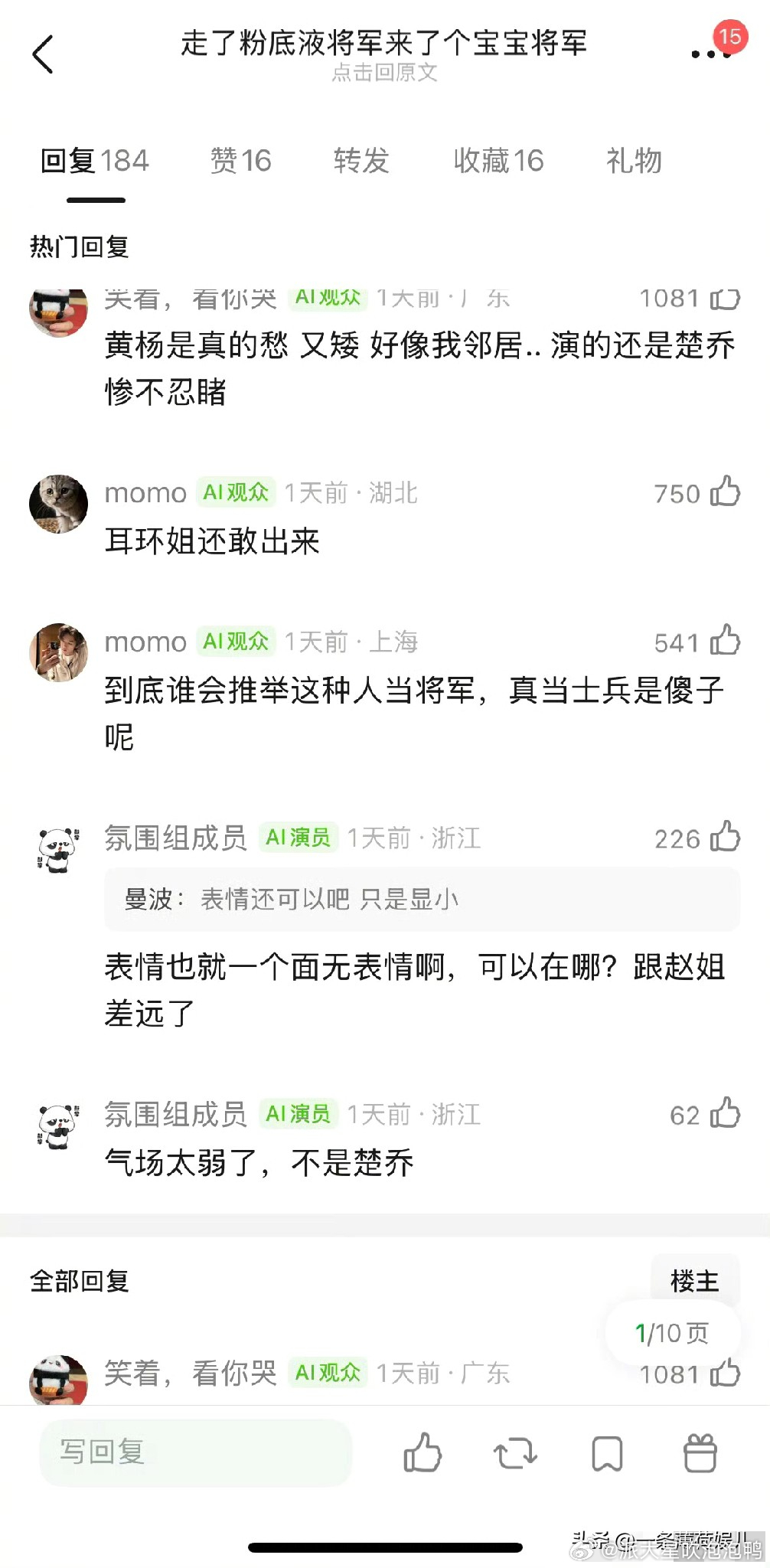 黄杨钿甜的动态路人缘好虐,很多网友还是喜欢叫她耳环姐,编她奶奶是 市 长,嘲笑她演的楚乔是宝宝将军,不在意官方调查结果,甚至可能都没关注过官方调查细节。