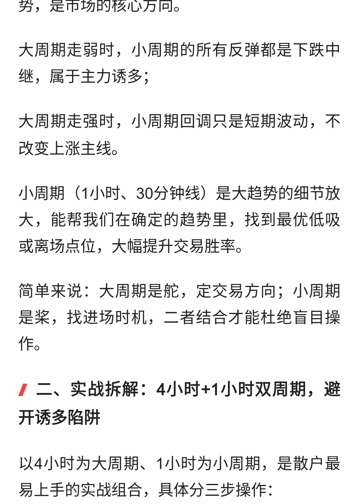 散户的盈利核心!双周期“看大做小”:一招避开诱多,精准抓趋势
