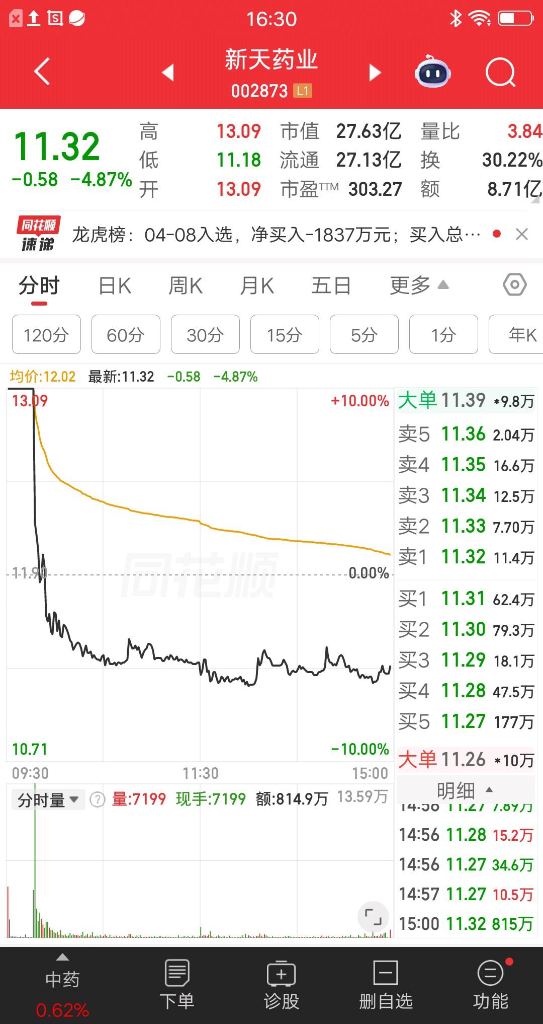 一位海南的股民,今天打了三个板全炸了。津药药业,新天药业和新能泰山,有没有同车的