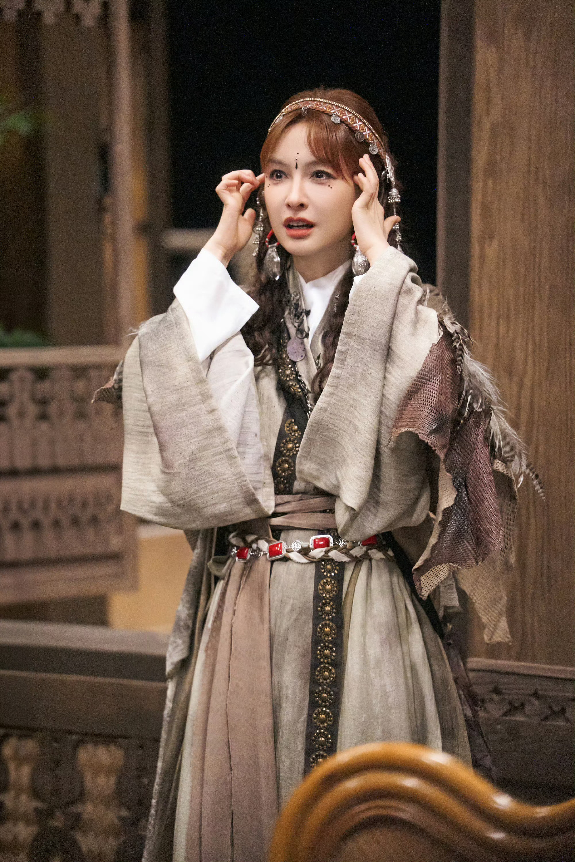 吴昕被夸穿搭越夸张造型越正确吴昕大侦探夸张造型巫女昕上线!金属头饰+羽毛buff