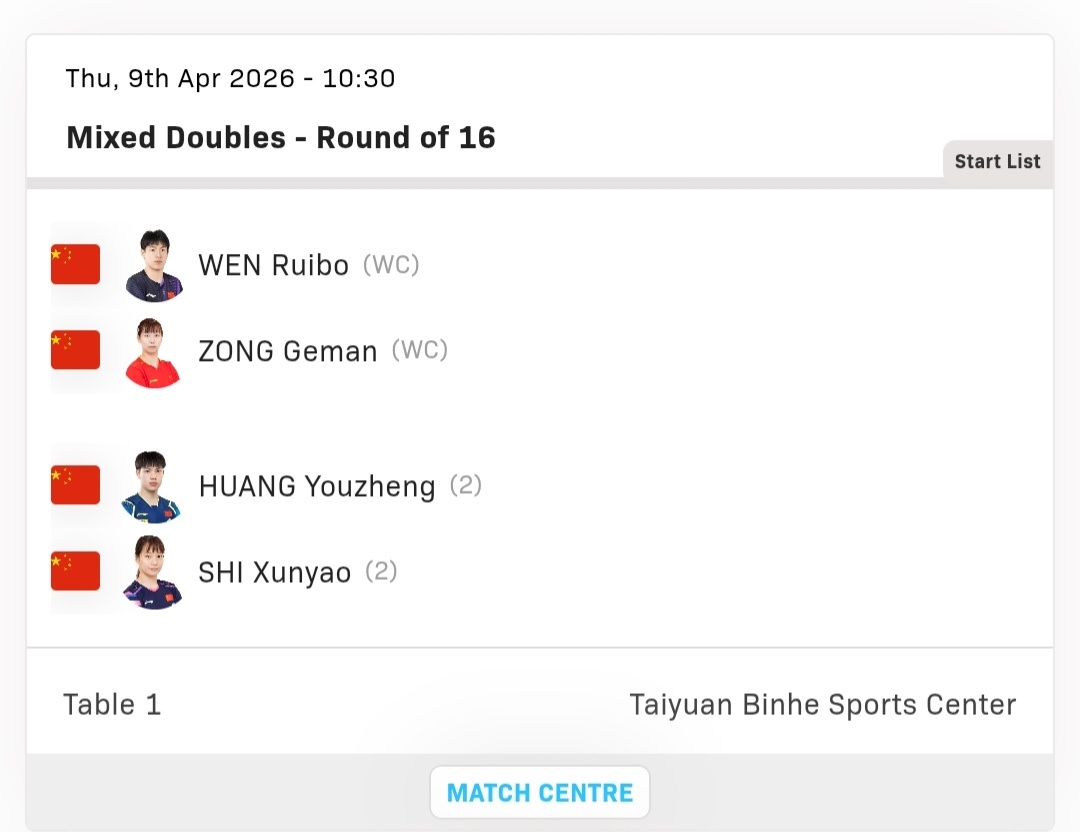 🏓赛程信息预告🏓『正赛第一比赛日』🏓04.09