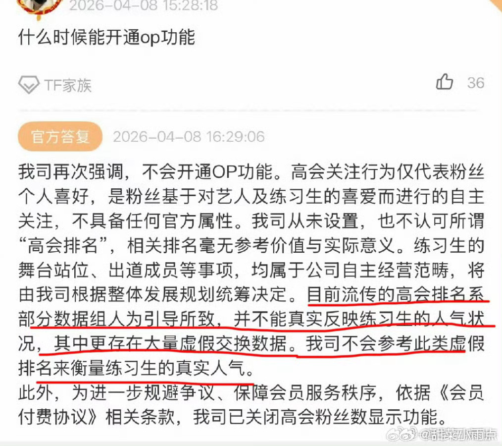 TF四代高会粉丝数关闭四代高会关闭粉丝数 点赞收藏也关了时代峰峻现在给的理由是大量虚假交换数据 让我们猜猜是想保谁?👀四代出道战应该还早吧,粉上四代的有福了…