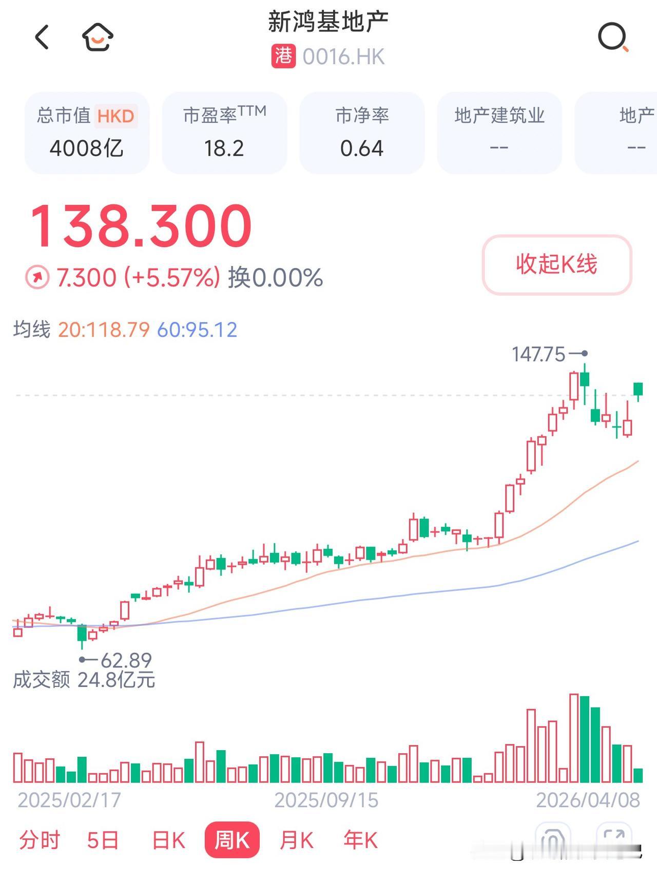 再看隔壁港股的新鸿基地产,市净率0.64,市值四千亿。就香港那巴掌大的地方,好多地产公司的市值,都超过了保利。