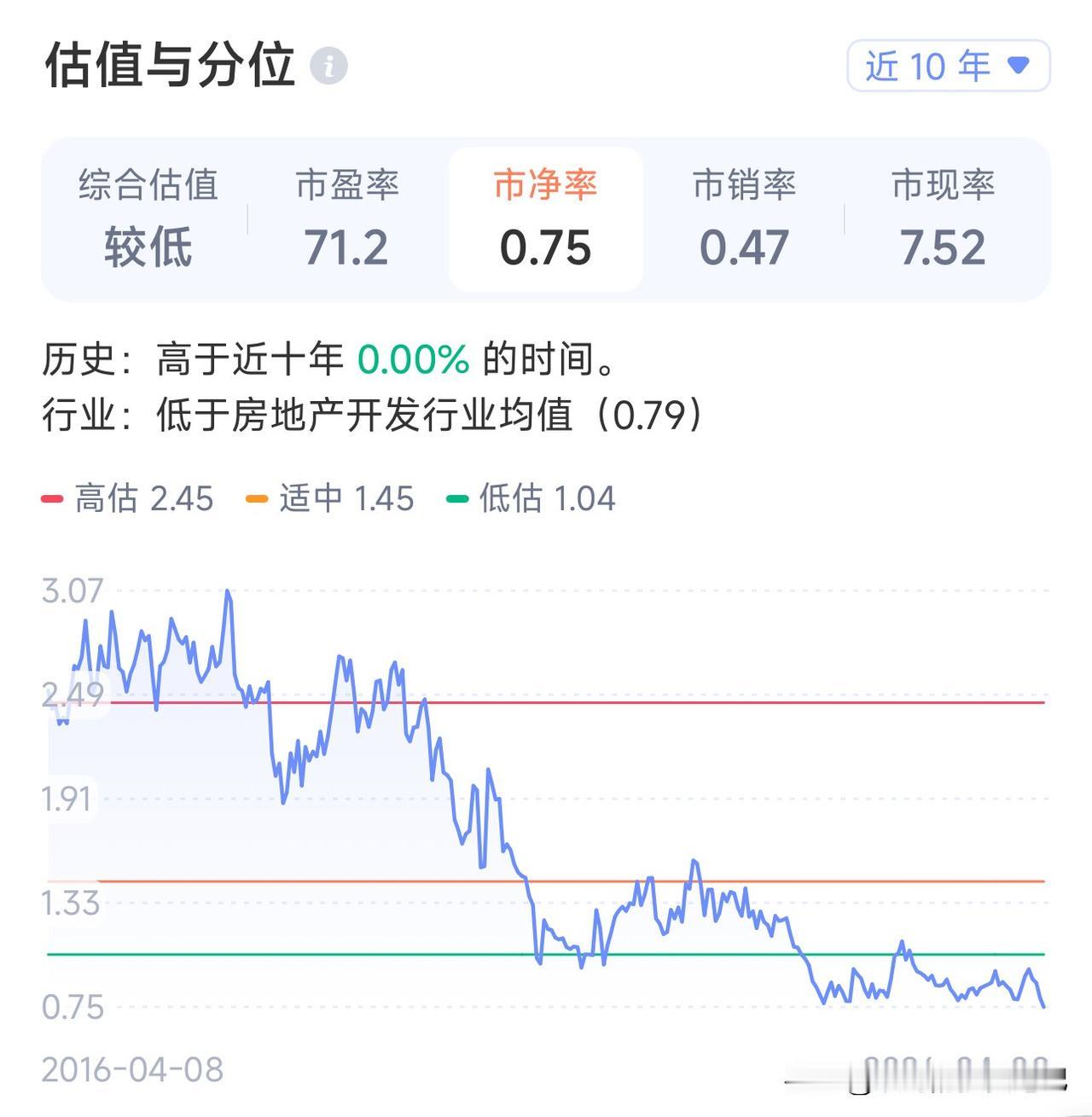 看看现在几只龙头地产股的市净率。