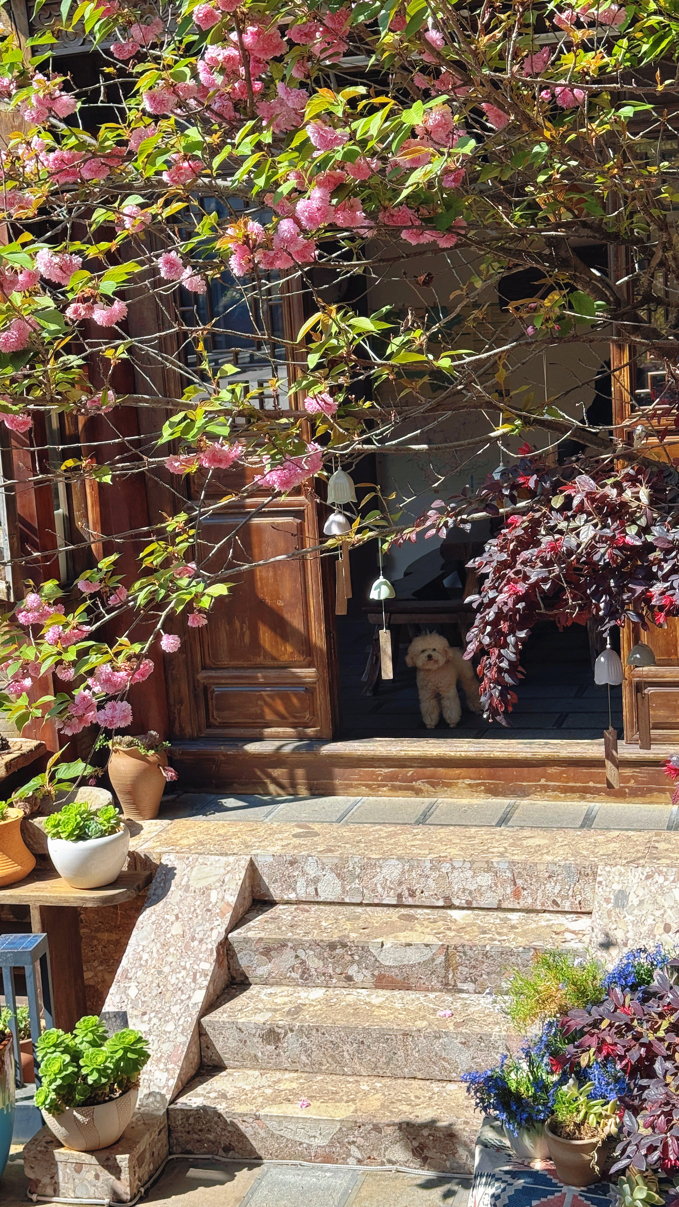 第一天 宝贝坐飞机到丽江三义机场,一下飞机就有专车接机,舒舒服服送到丽江古城的庭院客栈。客栈院子很宽敞,有躺椅和小鱼池,孩子一进去就玩开了!店里的鲜花饼、水果零食免费提供,小朋友可喜欢了!