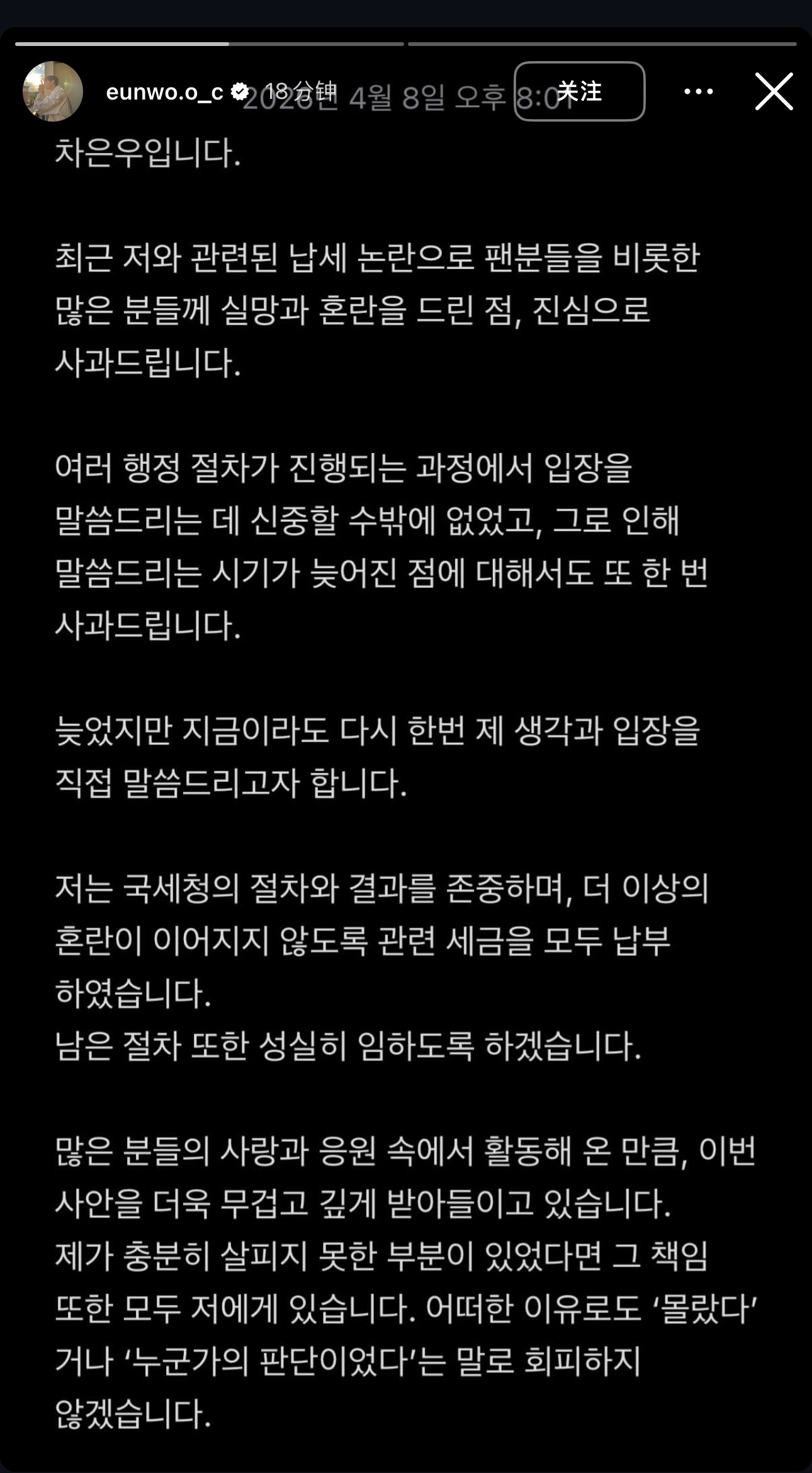 “我尊重国税厅的程序与结果,为避免争议持续扩大,已缴纳全部相关税款。剩余程序我也会诚实、认真地配合完成。”
