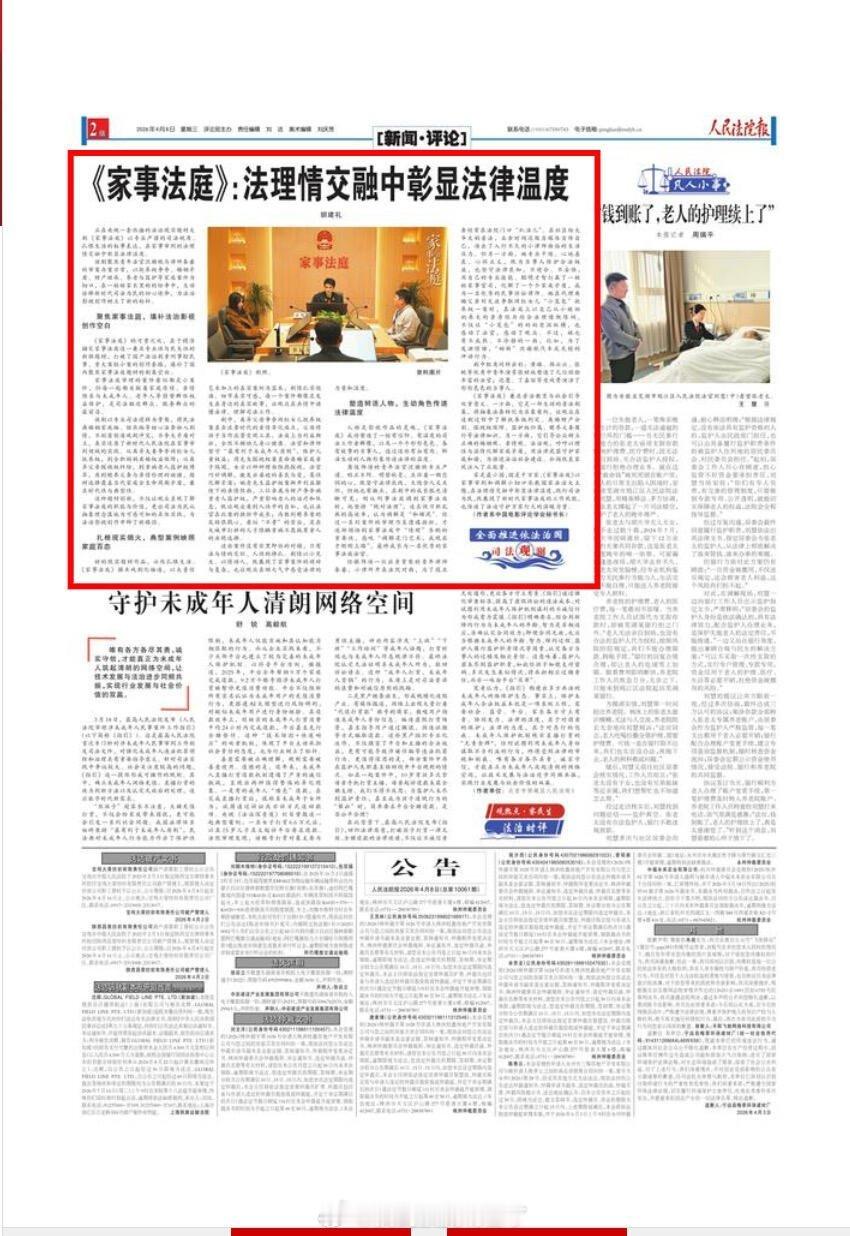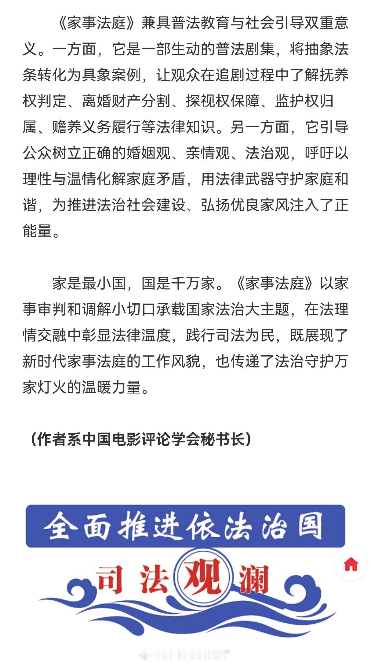 人民法院报评龚俊《家事法庭》:法理情交融中彰显法律温度。
